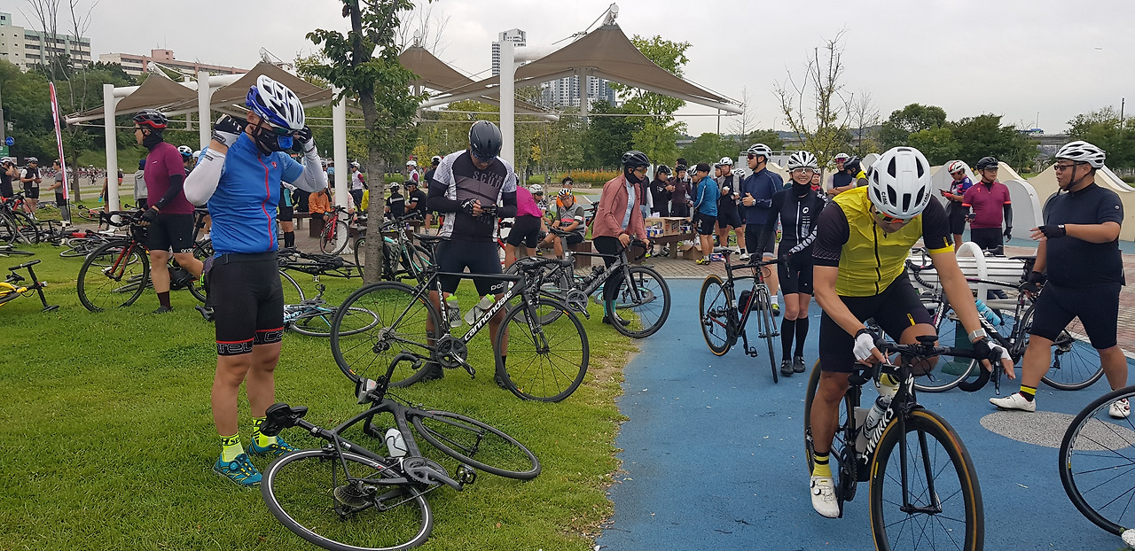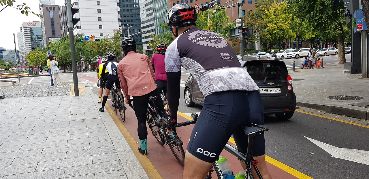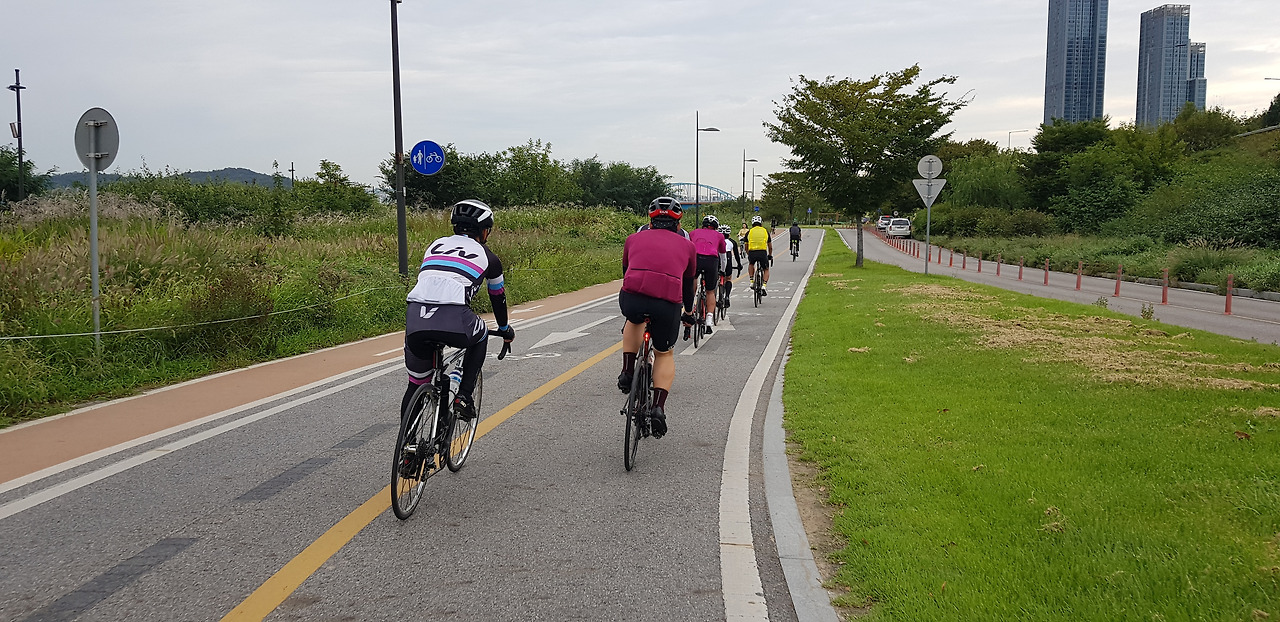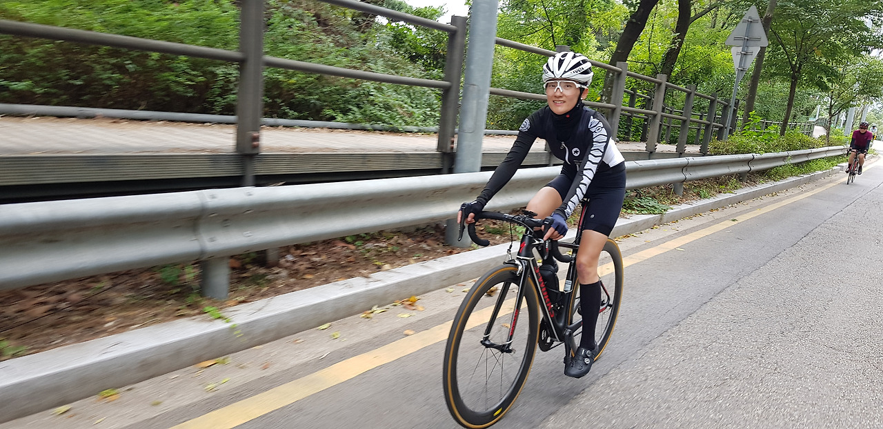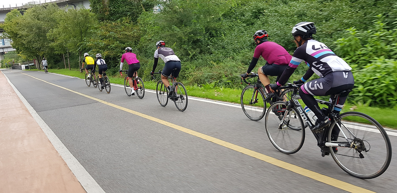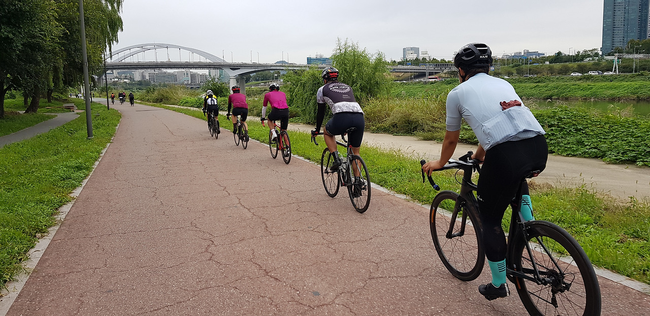 주말이라 이른 시간에도 불구하고 많은 라이더가 빠른 속도로 스쳐 지나갔다.