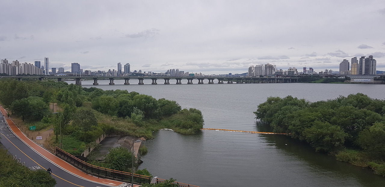 청담 그라피티 동굴을 나오니 한강이 확 터져 있었다.