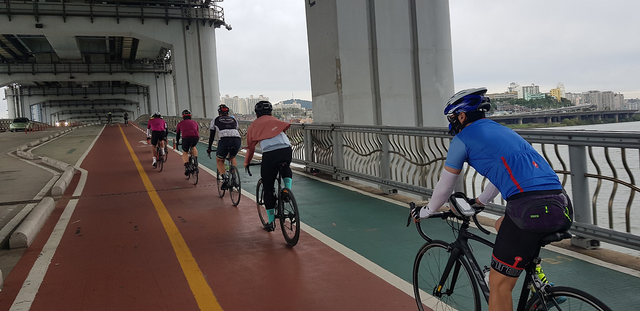 남은 6명은 반포를 향해 일몰 시간을 향해 페달을 밟았다.