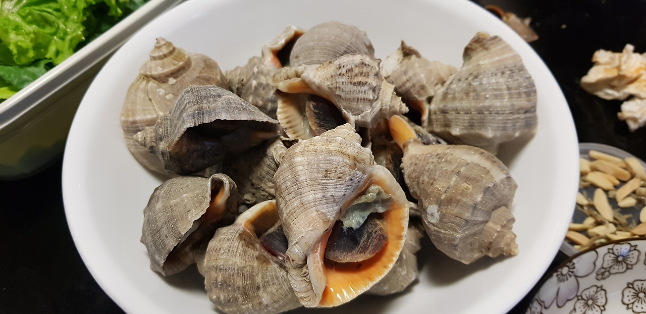 구리까지 오라던 선배는 나를 주겠다며 새우와 참소라를 준비해 두었던 것이다.