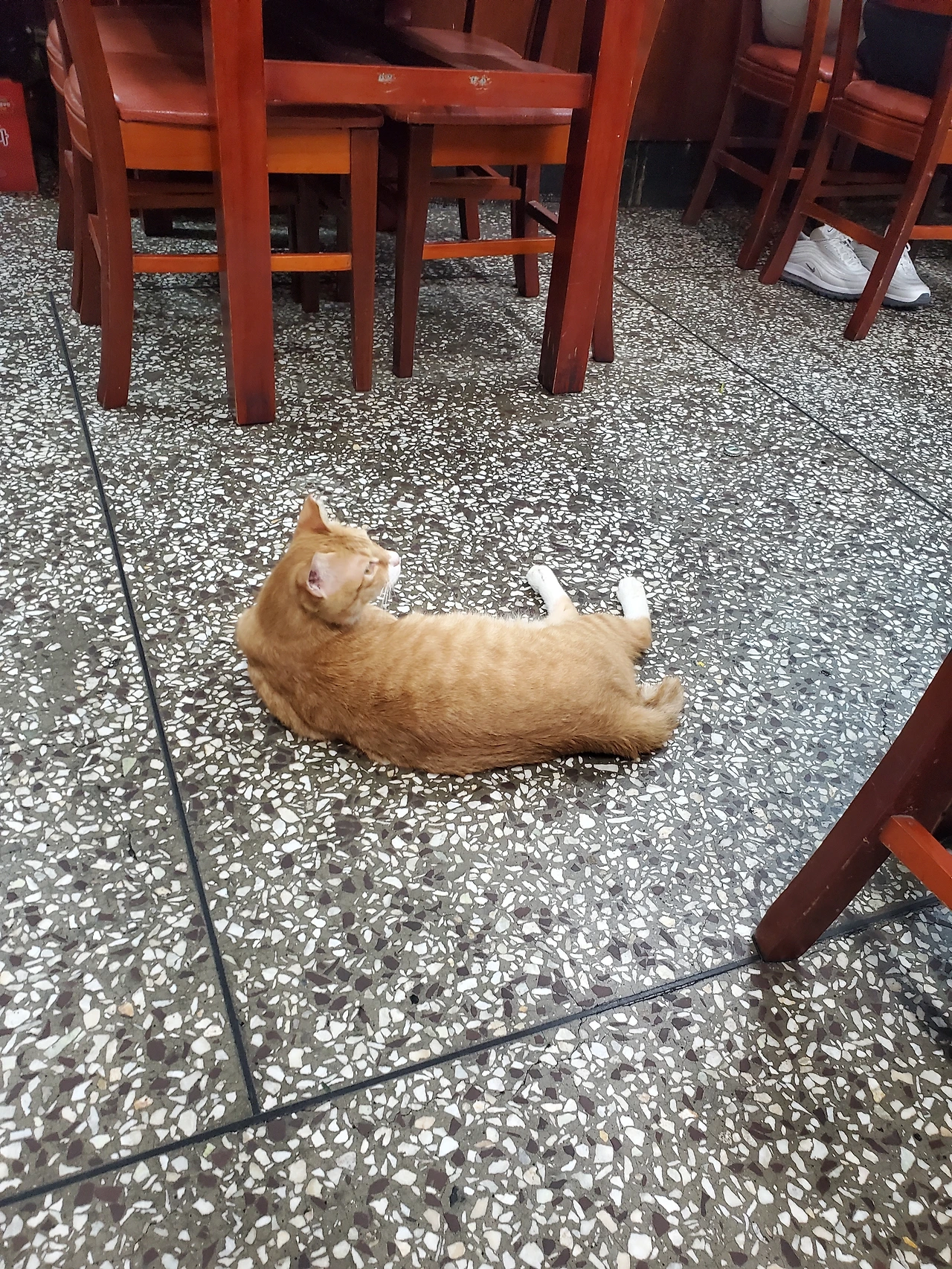 식당에서 키우는 녀석 같은데 꼬리가 잘렸다.