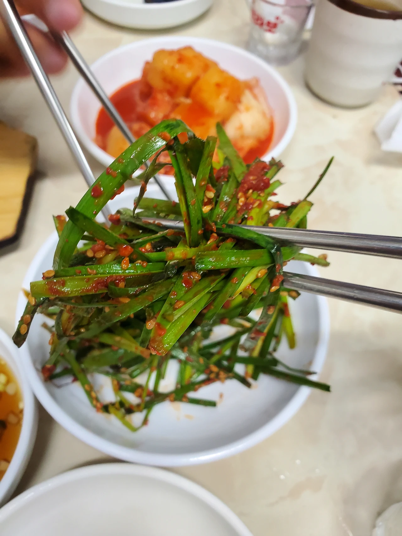 서울에선 부추라고 하지만 부산에서는 정구지라고 하는데 아무튼 정구지가 풍성하다.