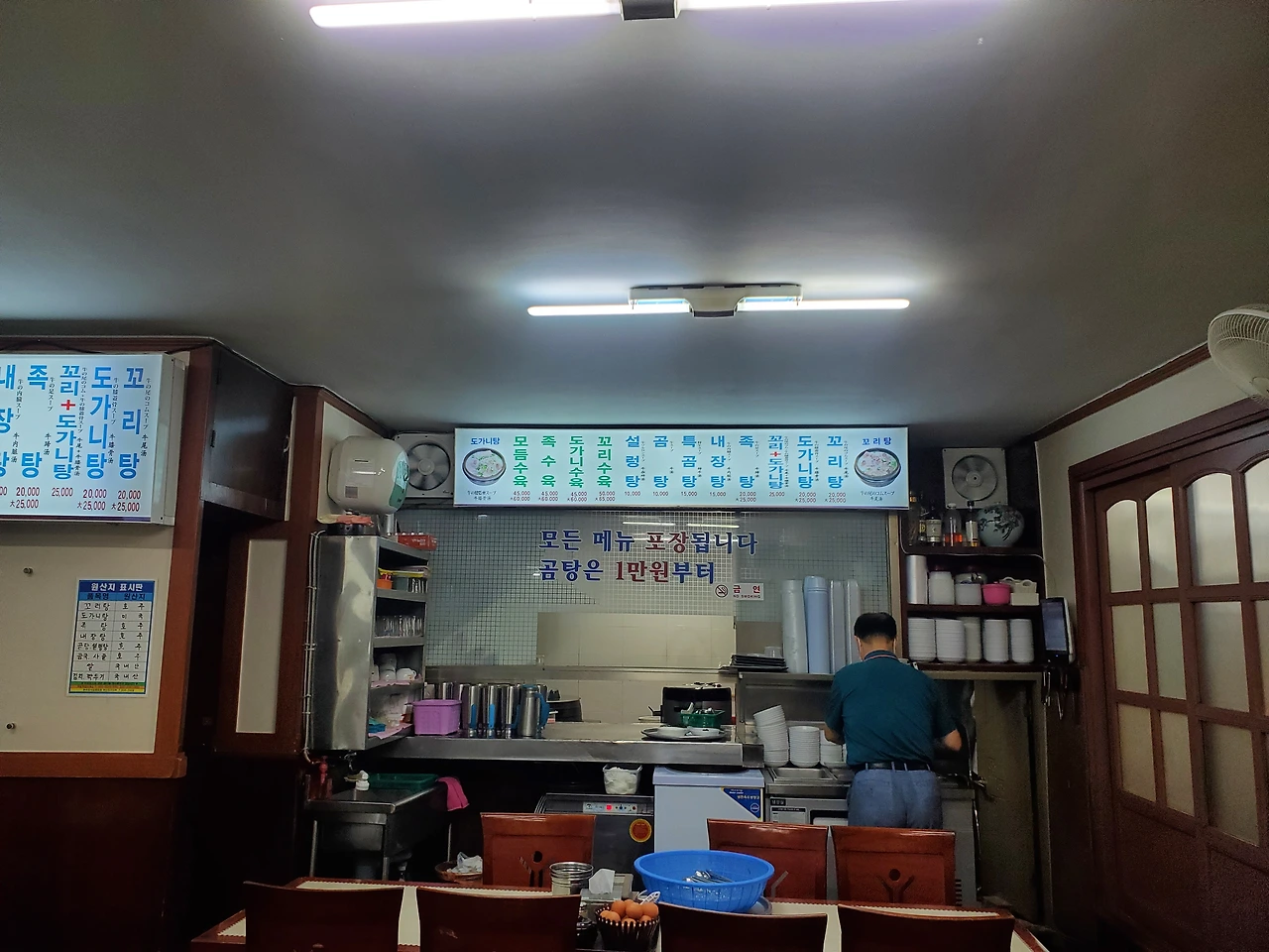 불안한 마음을 누르고 간판 아래 서서 보니 건물 깊숙한 곳에 반지하 같은 구조의 식당 내부가 들여다 보였다.
