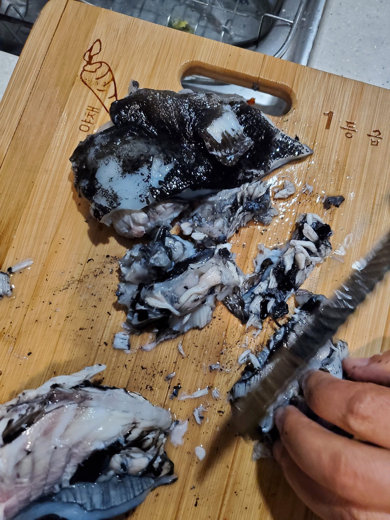 먹기 좋은 사이즈로 듬성듬성 잘라준다.