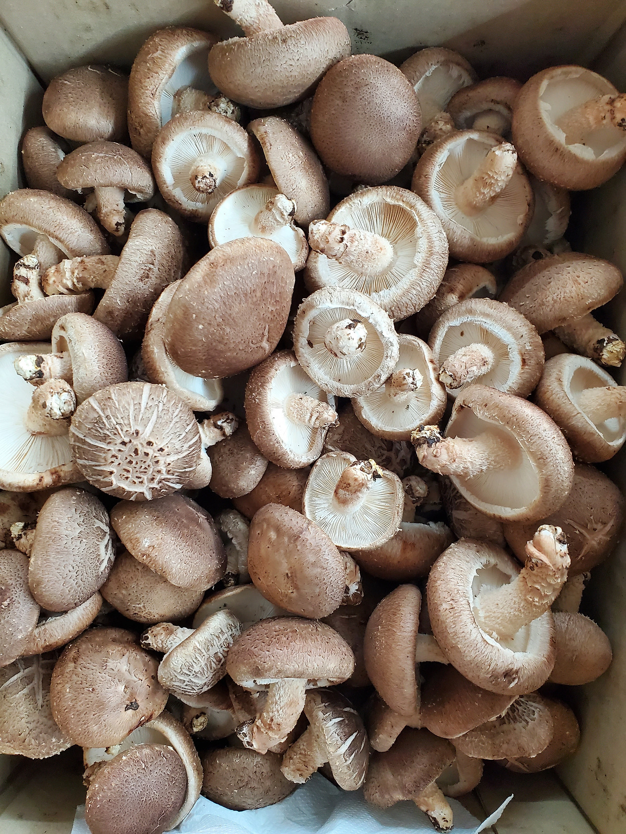 박스를 열어 소분해 냉장고 여유공간을 찾아 채웠다. 토실토실한 버섯 몇 개를 따로 챙겨 칼질을 시작했다. 제법 도톰하게 버섯의 식감을 제대로 느끼고픈 마음이었다.