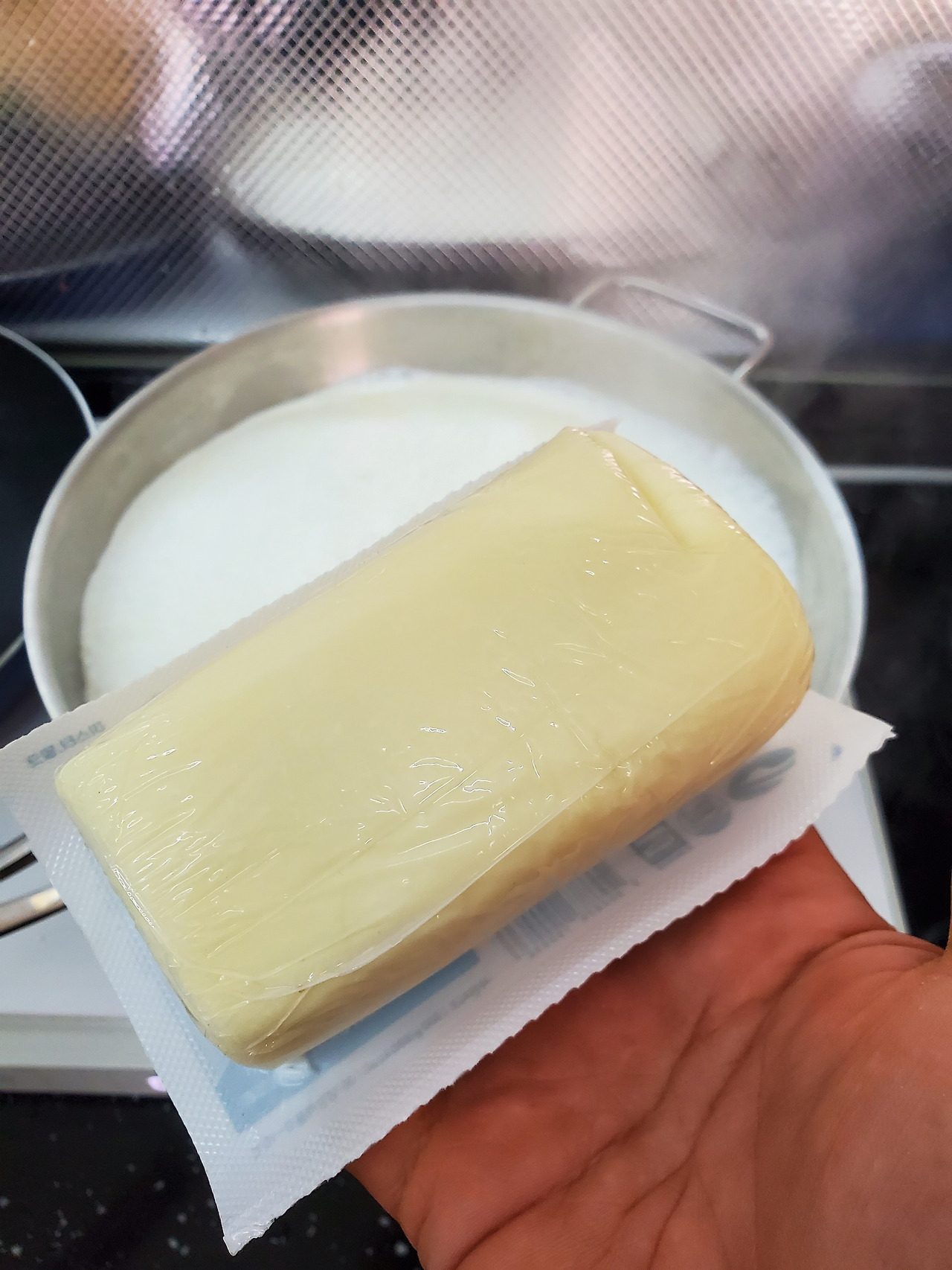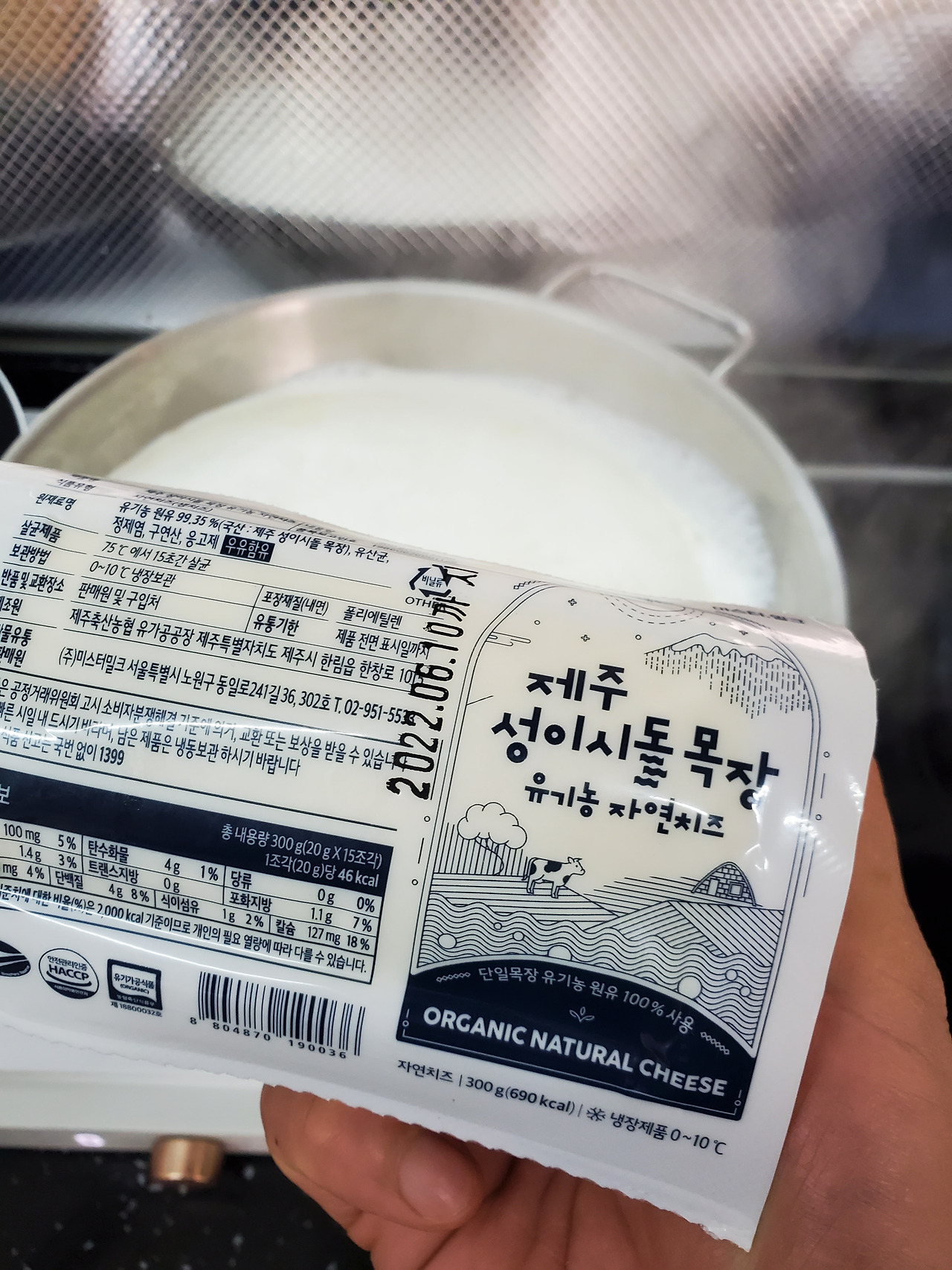 제주도 서프로님이 준 제주성이시돌목장 출신 유기농 치즈를 녹이기 쉽게 잘라서 퐁당!