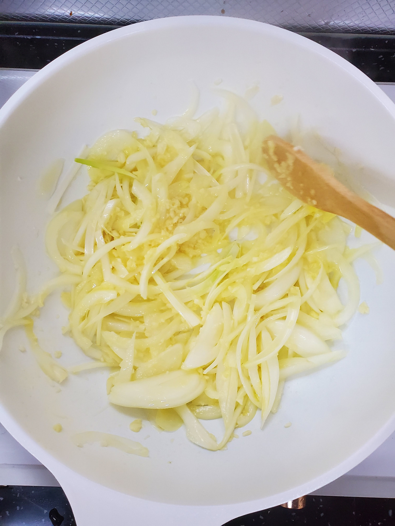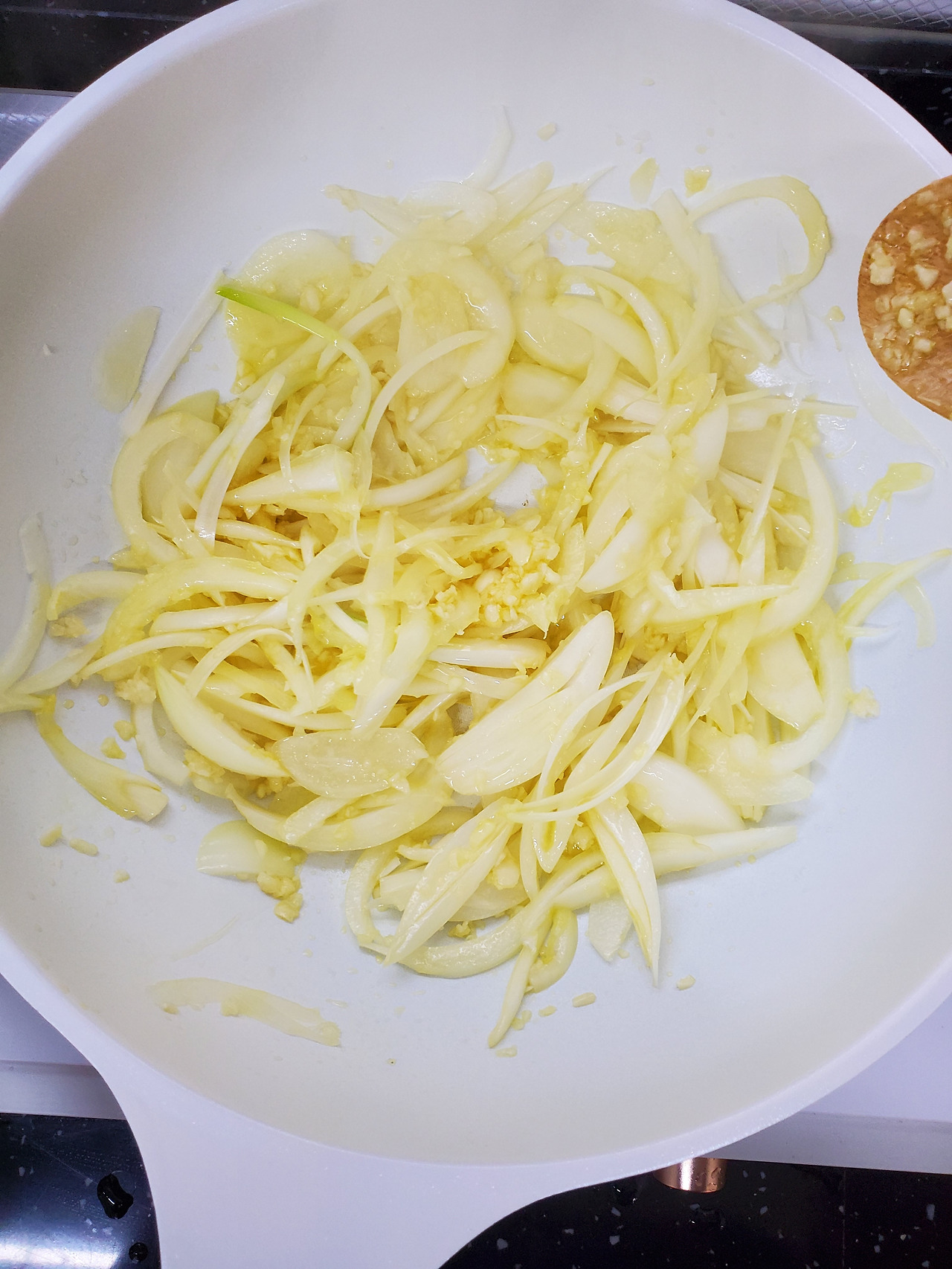 일단 부터에 잘게 썬 마늘을 볶다가 양파를 넣고 적당히 익혔다. 누가 가르쳐 준 것도 아닌데 이런 요리도 알아서 잘하는 것 보면 난 요리 천재가 분명하다. ㅎㅎ
