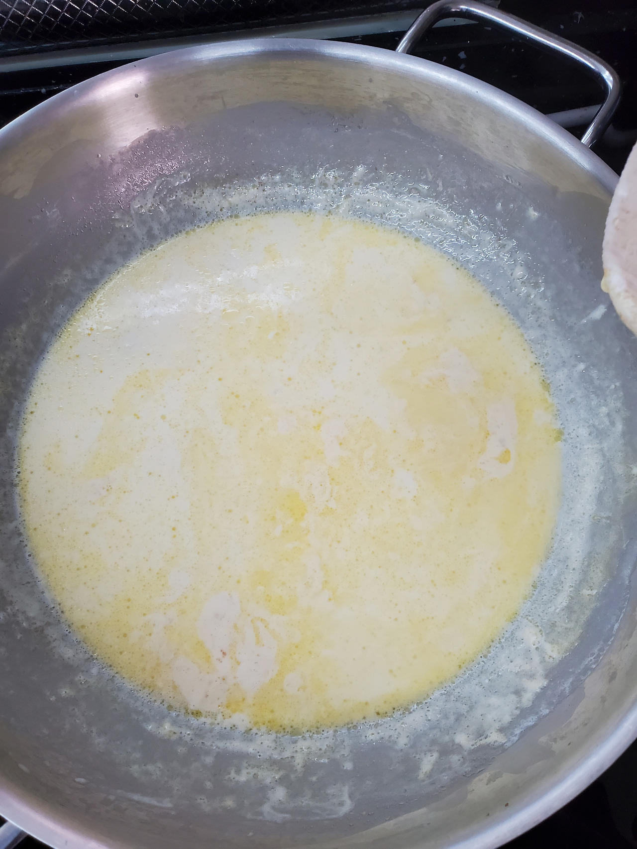 아무튼 한 통 쏟아붓고 파스타 소스 조리는 시작됐다. 이제 실수하면 큰일이다.