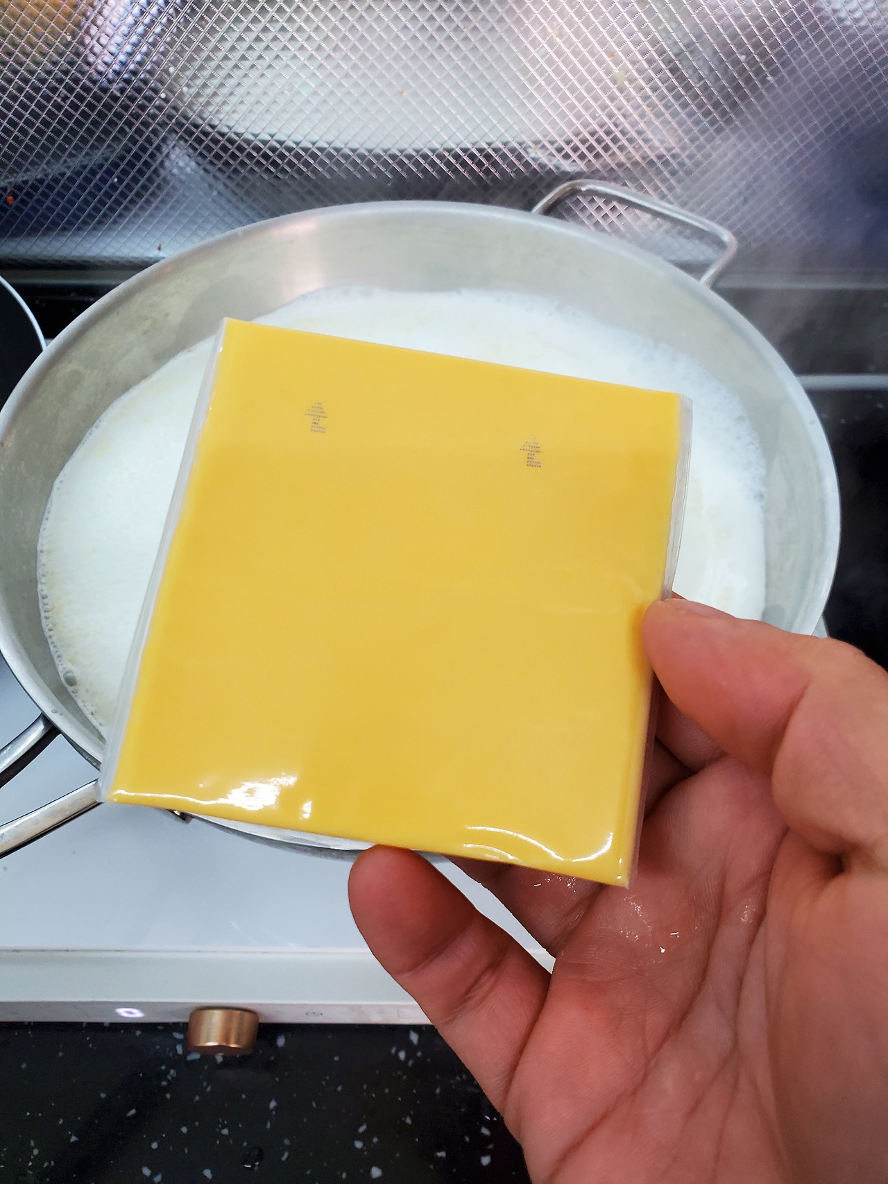 체다 치즈 몇 장 뜯어서 넣고 깔 좀 맞춰 준다. 조금은 누리끼리해야 맛있어 보이지 않나 싶은데...