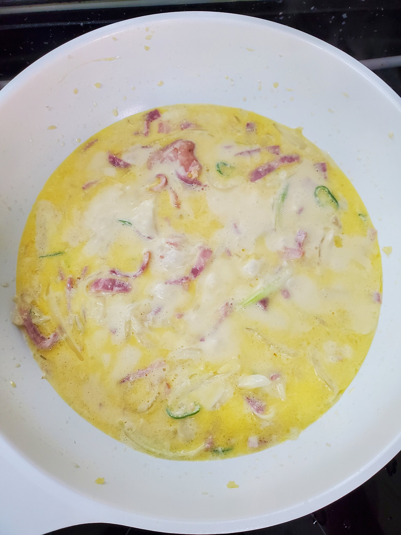 베이컨도 한 팩 썰어 넣고 느끼함을 잡을 제주도 출신 겁나 매운 청양고추를 썰었다.