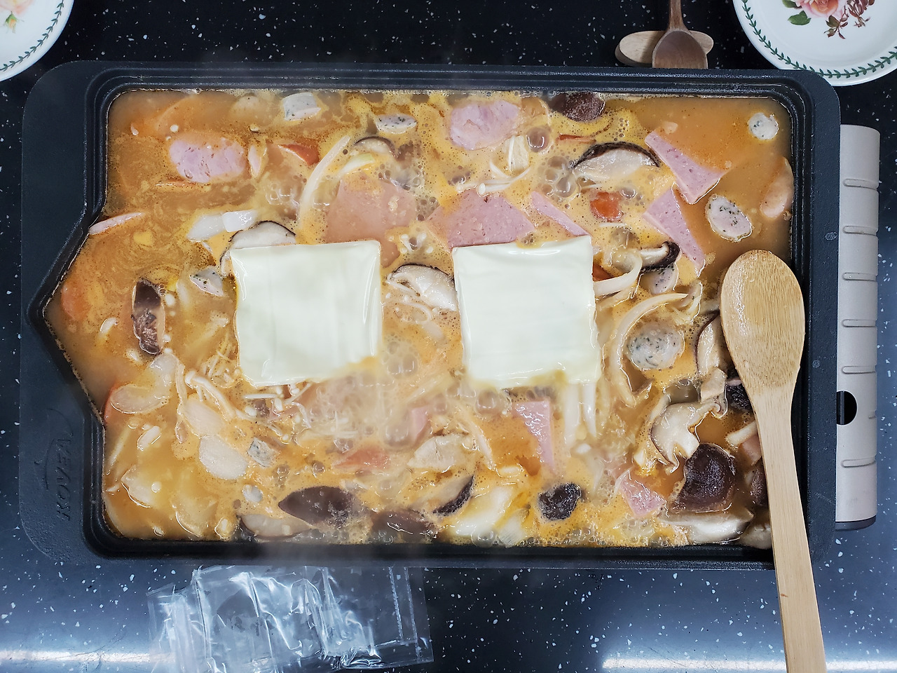 난 체다 치즈 두 장을 넣었다. 이게 6인 분인데 느끼함이 필요하다면 치즈를 더 넣으면 된다.