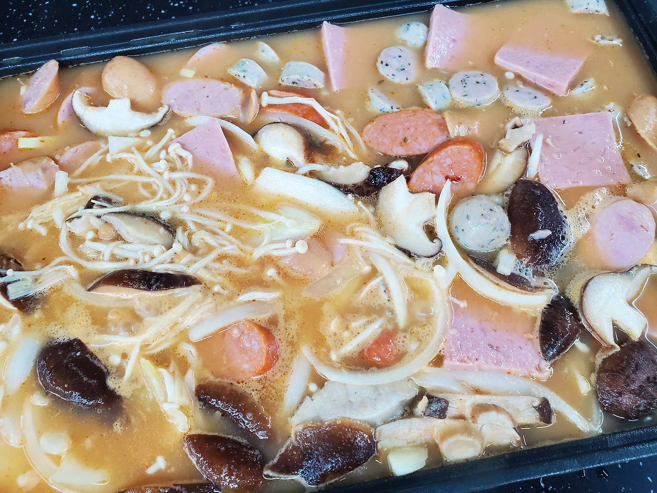 * 진정한 부대찌개 맛이 필요하다면 빈(뻘건 소스 있는)을 넣으면 좋은데 파는 곳이 별로 없다