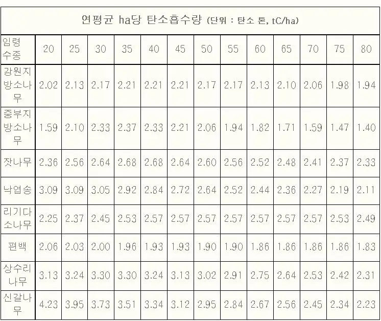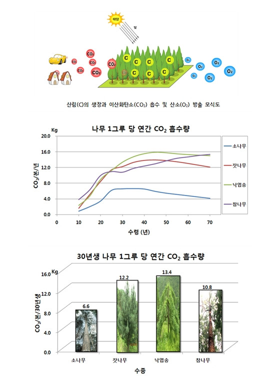 축구장 넓이에 해당하는 소나무 숲은 중형 승용차 3대가 배출하는 온실가스를 빨아들이는 것으로 나타났다. 또 30년생 소나무 10그루는 서울에서 부산까지 가는 자동차가 배출하는 양만큼..