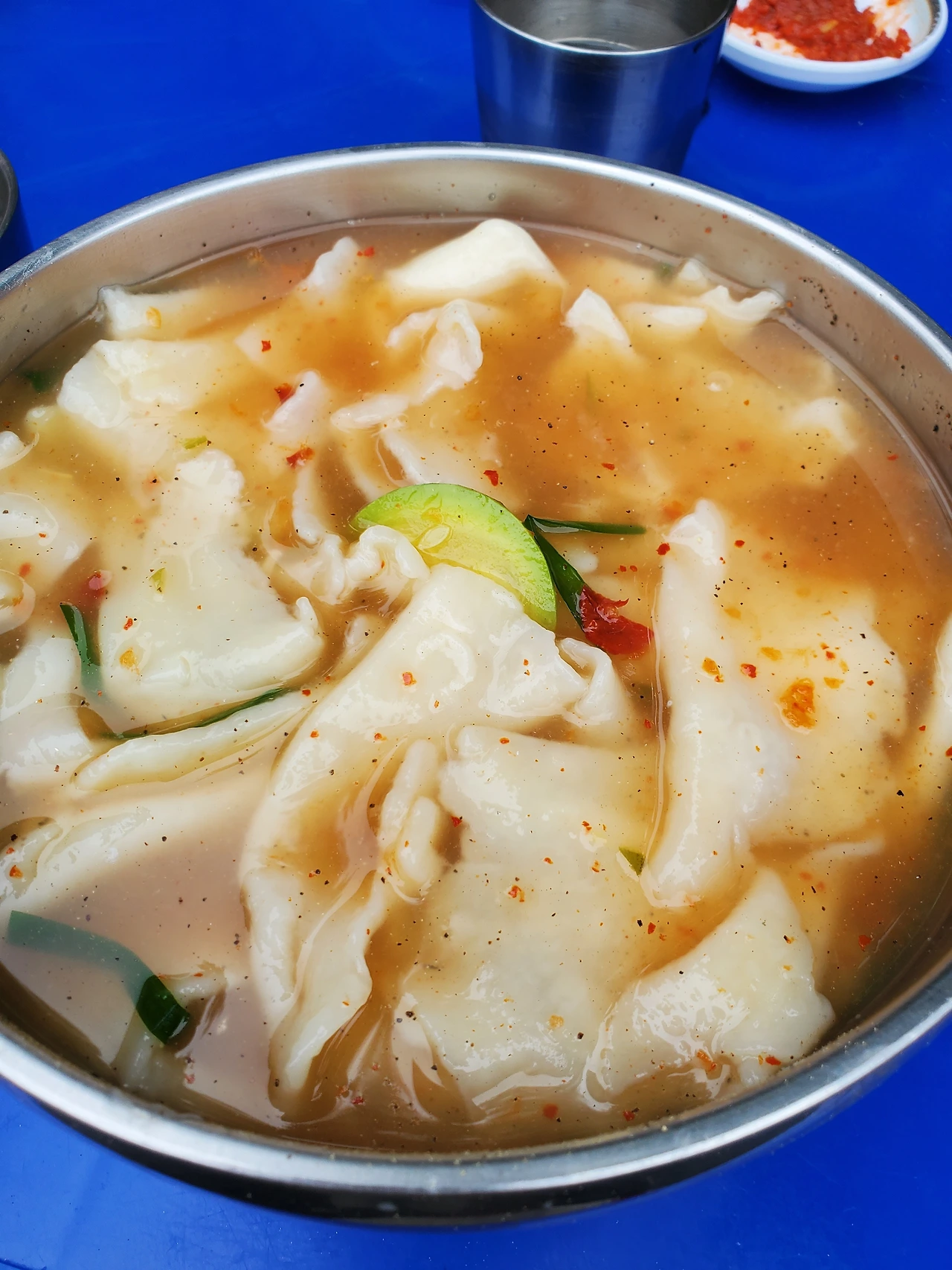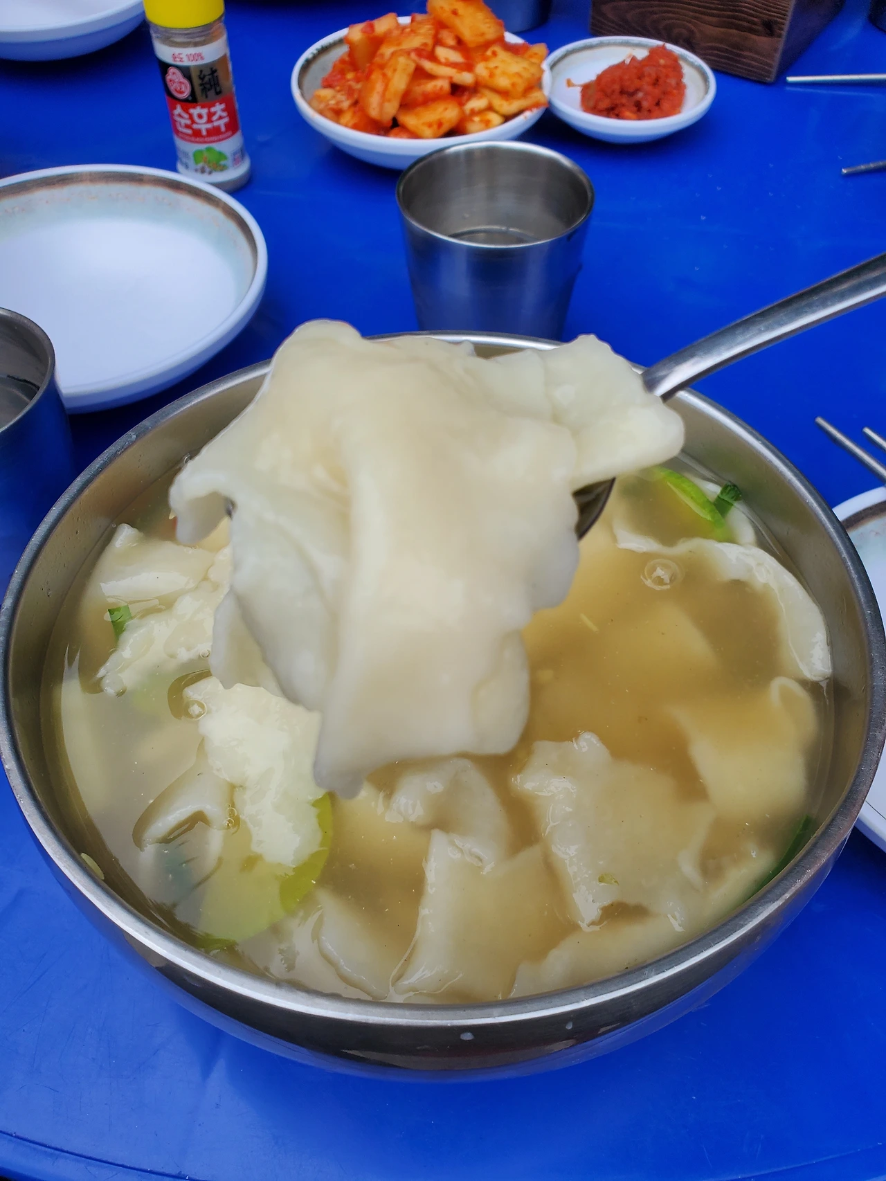 손수제비다. 수제비 피가 얇고 쫀득하다. 아는 사람은 다 알다시피 수제비의 핵심은 국물 아닌가? 감자에서 나온 전분이 풀어져 맛깔난 국물과 시원한 맛이 일품이다. 곱빼기 시켜서 먹어도 다 먹을 수 있다. 왜? 맛있으니까!!!