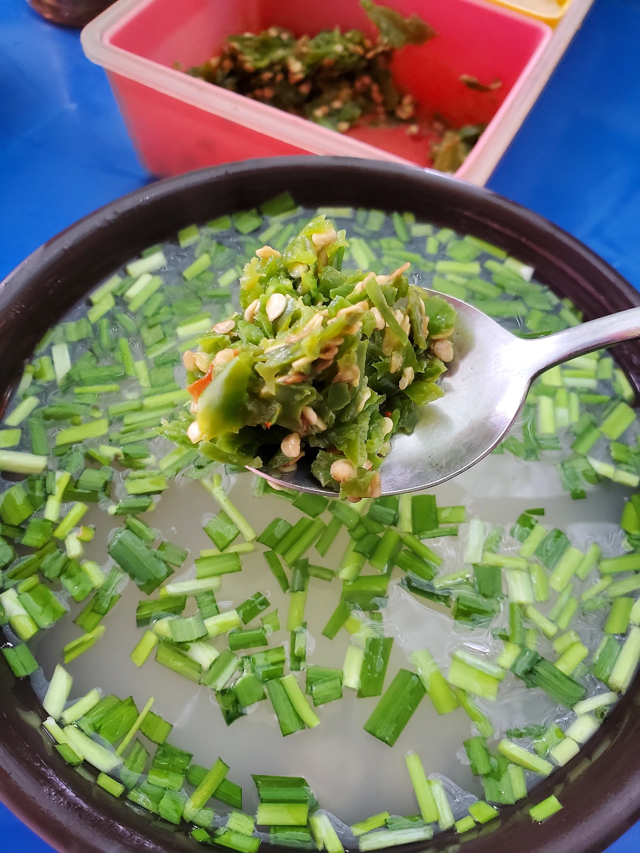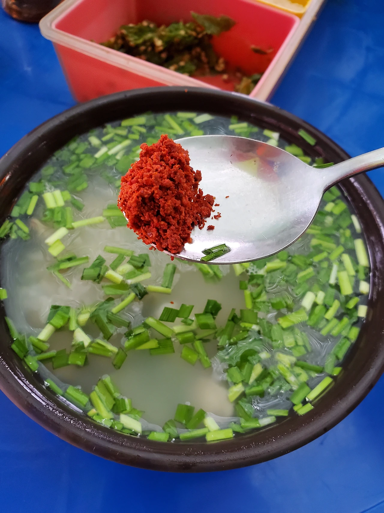 다진 양념이다. 이게 핵심 중 하나다. 칼칼하고 시원한 맛의 비결. 잘 보면 알겠지만 고춧가루도 진심이다. 먹어보지 않으면 절대 모르는 비기다.