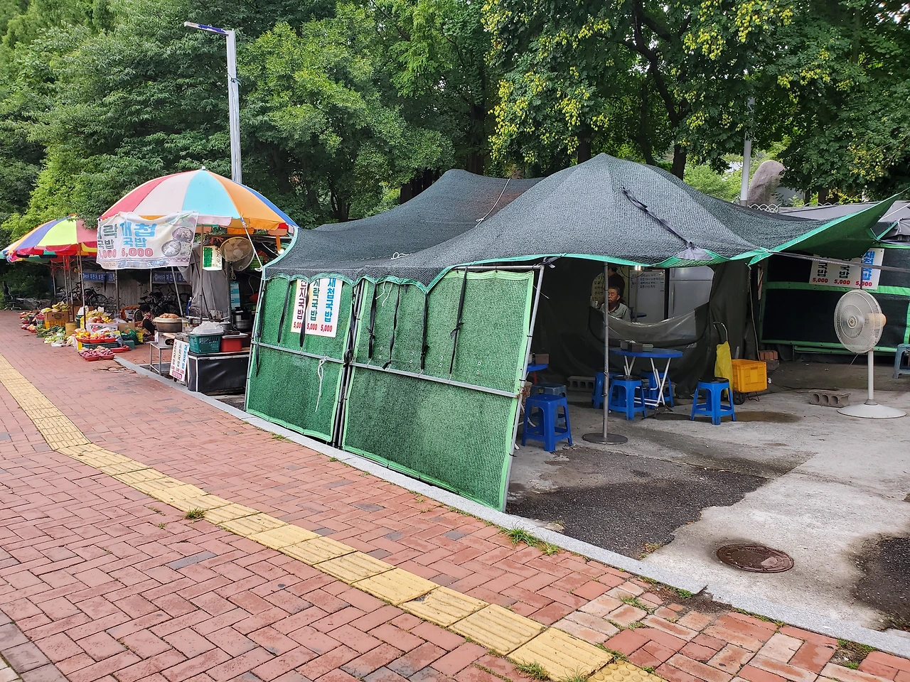 고명까지 올려진 국수가 얼마나 맛있는지 모른다. 요즘 같은 날씨엔 밖에 설치된 간이 테이블에서 식사하는 게 좋을 것 같다. 역시 멸치육수 기똥차고, 깍두기 김치와 함께 먹으면 천상 궁합이다.