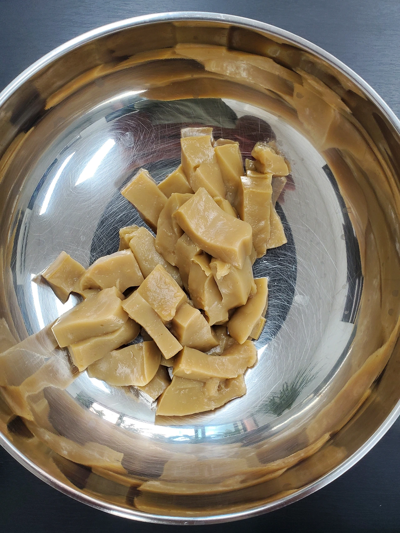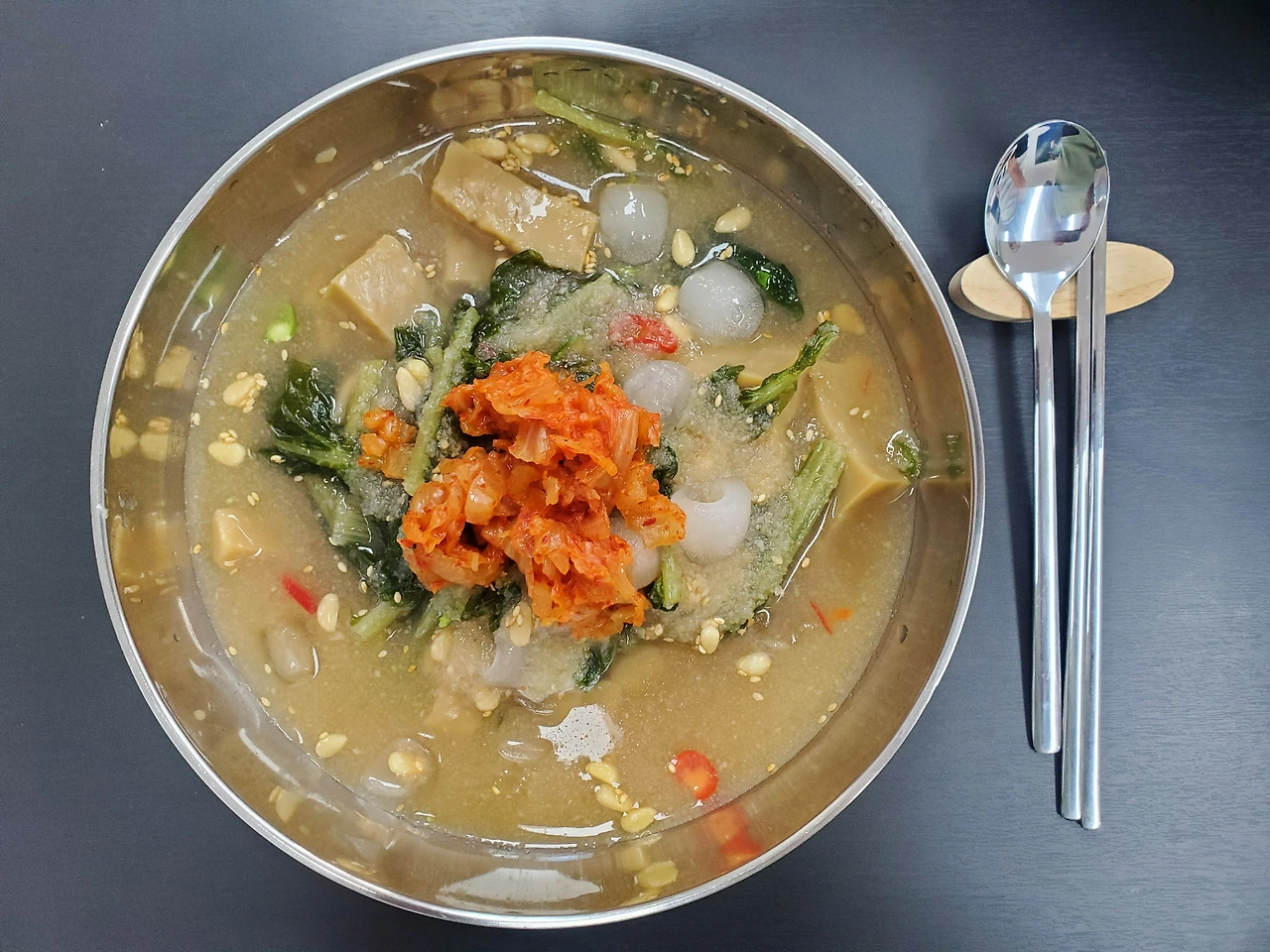 냉장고에서 작년 가을에 제주도에서 도토리를 주워 곱게 갈아 얼려놨던 걸 꺼내왔다. 최근 주변 식당이 죄다 시시해지기 시작해서 다시 사무실에서 밥을 해 먹기 시작했는데 이번엔 새콤달콤한 육수에다 도토리묵을 말아먹기로 했다.