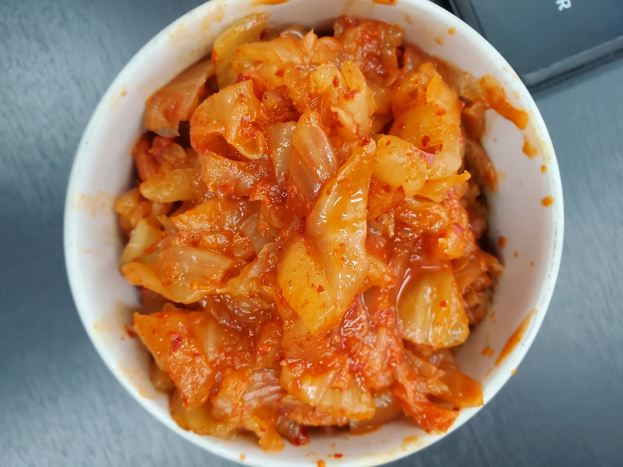 김치 고명이 필요하니 묵은지를 꺼내 잘게 썰어 그릇에 담았다. 이건 취향껏 첨가해서 먹기로~