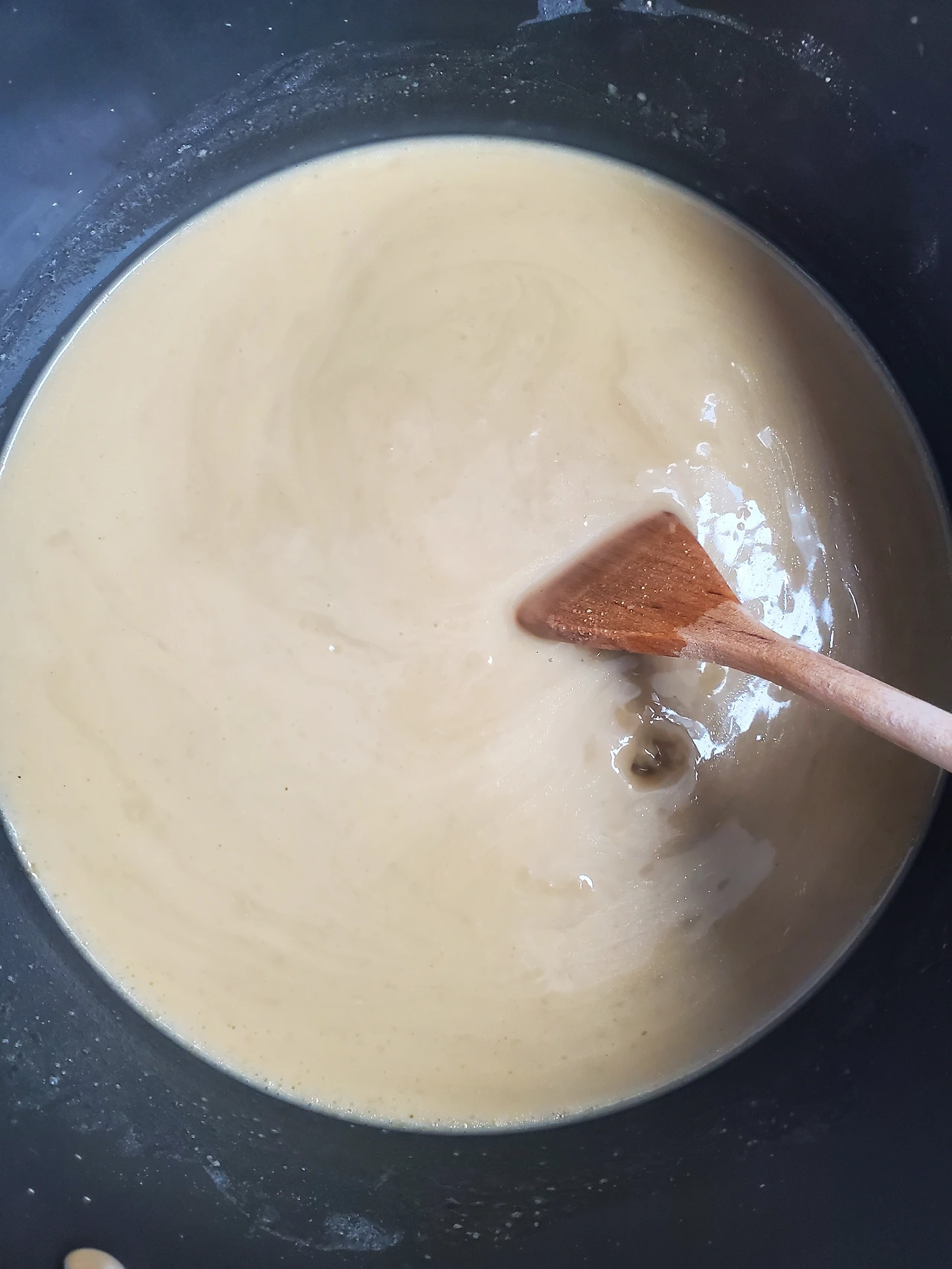 어느 정도 걸쭉해졌다 싶으면 용기에 담아야 하는데...