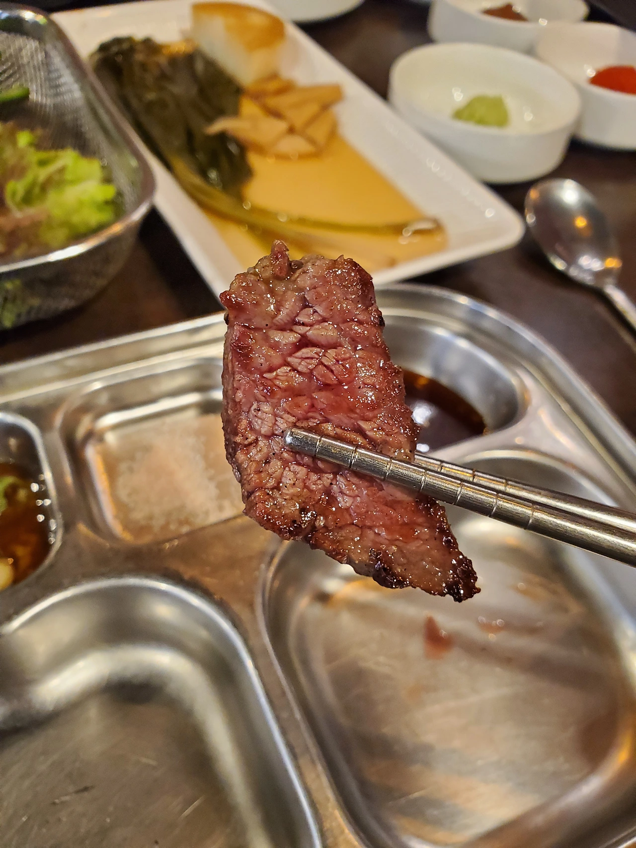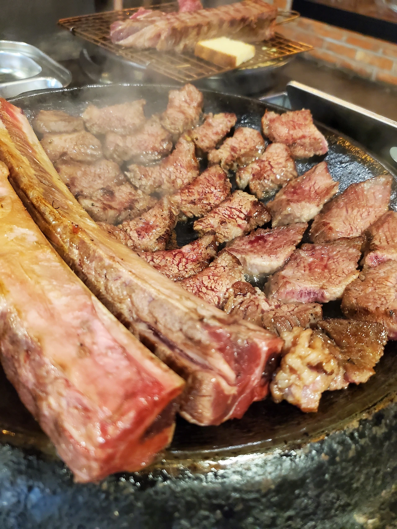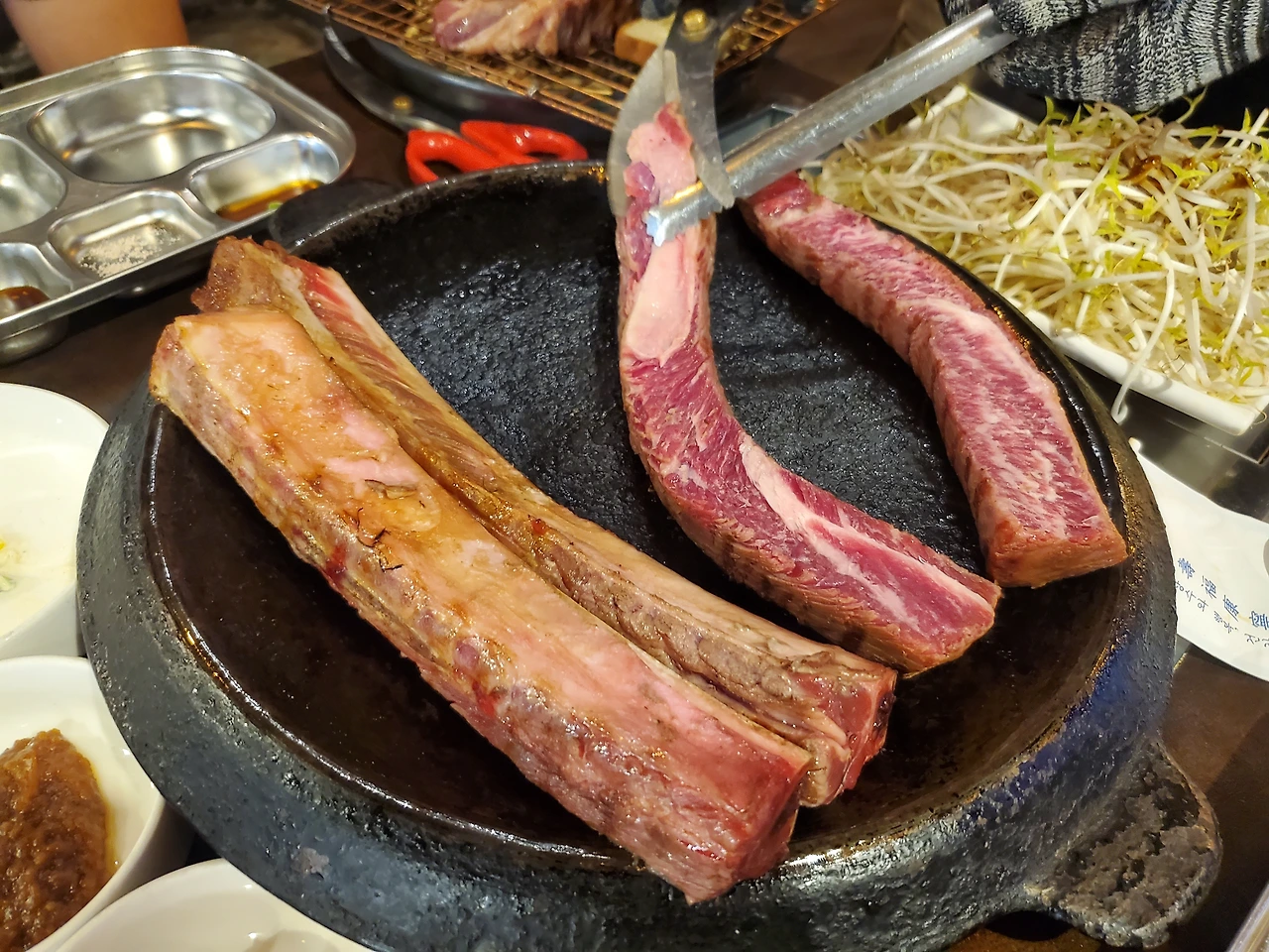 다른 테이블로 나갈 준비를 마친 우대갈비가 있어 사진 한 장 찍어 봤다.