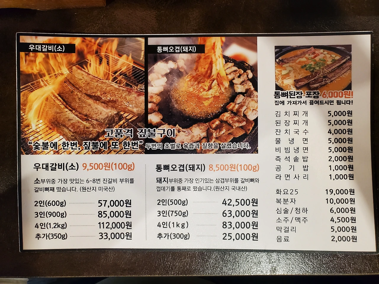 독특하게 짚불을 붙인 후 우대갈비를 초벌한다. 이걸 테이블 앞에서 직접 해주는데 보는 재미도 쏠쏠하다.