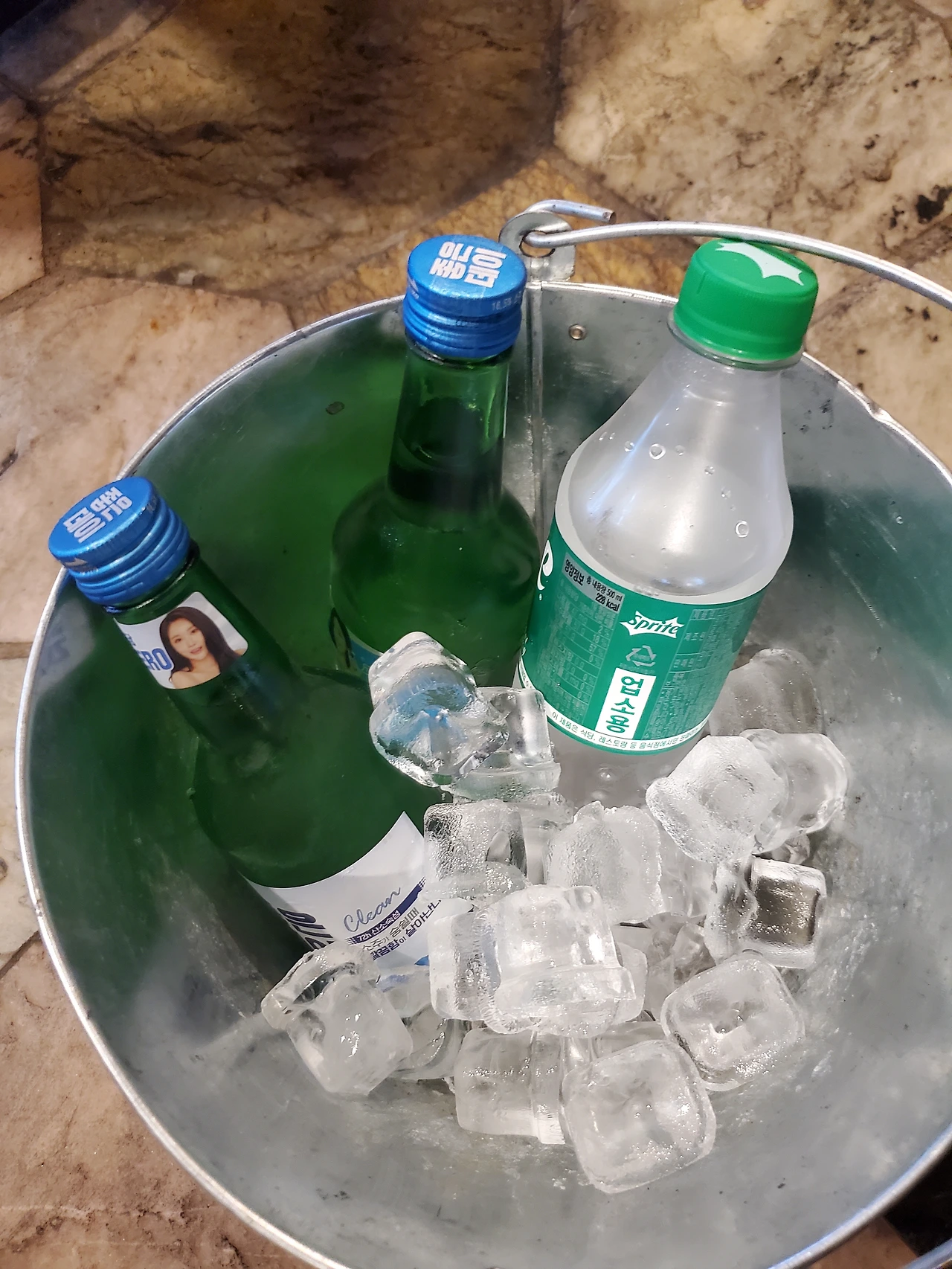 술은 이렇게 담아서 나왔다. 아무래도 시원한 소주와 음료를 위해 이런 건 필수적인 요소 같다.
