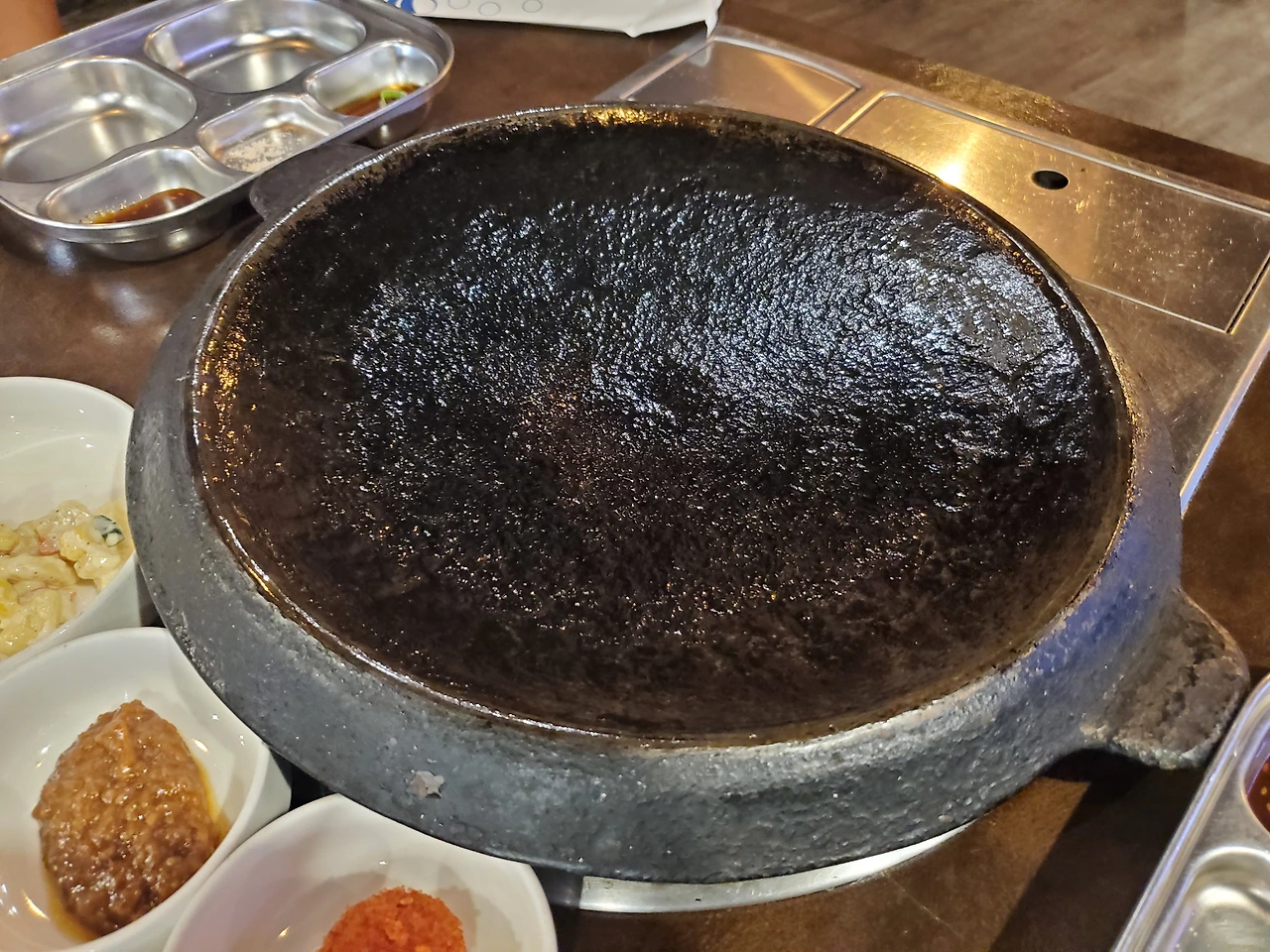 당연히 우대갈비를 주문했고, 잠시 기다리자 이런 게 나왔다. 이를테면 솥밥인 거다.