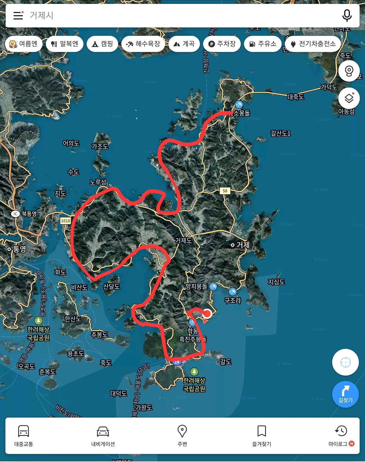 난 거제도 일주 라이딩을 하는 날이다. 이 더운 8월, 그것도 남들은 덥다고 계곡이며 바닷가를 찾아가는 마당에 무슨 라이딩을 하겠다고 겁도 없이 덤볐는지 모른다. 강원도 쪽으로 라이딩 가는 것과는 너무 다른 상황이었는데 무려 140km에 총 획득 고도만 해도 2,000미터나 되는 코스를 짰으니 미쳐도 단단히 미친 거다. 그것도 혼자서 말이다. 코스를 달리는 동안 반대편에서 오는 사람 네 명을 제외하곤 같은 방향으로 달리는 라이더는 단 한 명도 보지 못했다. 아무튼 난 오늘 입에서 단내 날 정도로 탔고, 지금까지 라이딩을 하며 허벅지에 펌핑이 생겨 고통을 느껴본 적은 처음이었던 것 같다.
