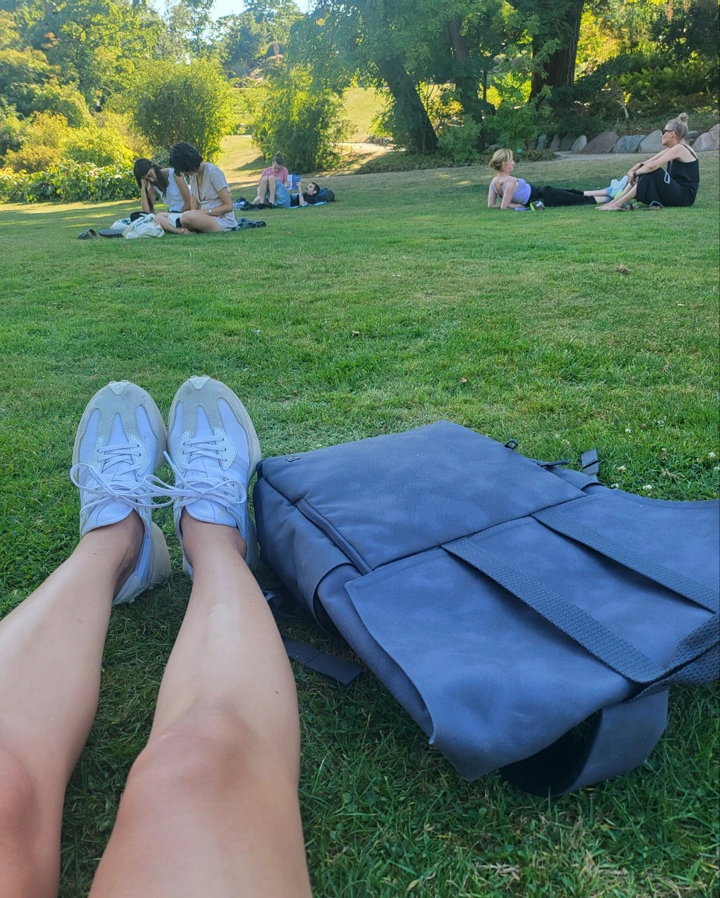 서프로는 진드기나 벌레 같은 게 걱정됐지만 그들처럼 철퍼덕 잔디 위에 앉았다. 골프장 어프로치에나 있는 잔디 같더란다. 이런 잔디가 가득한 곳이라면 밖에서 필라테스 수업을 해도 좋을 것 같다는 직업정신이...