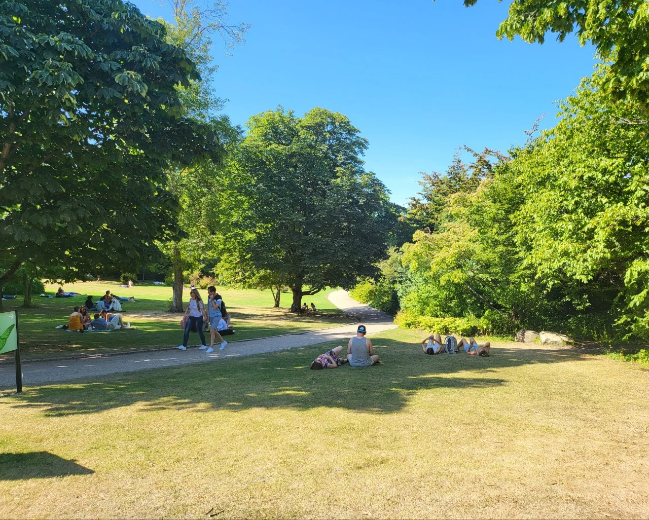 밖에 있는 가든을 보니 많은 사람들이 맨 풀밭에 아무것도 깔지 않고 누워있곤 했다.