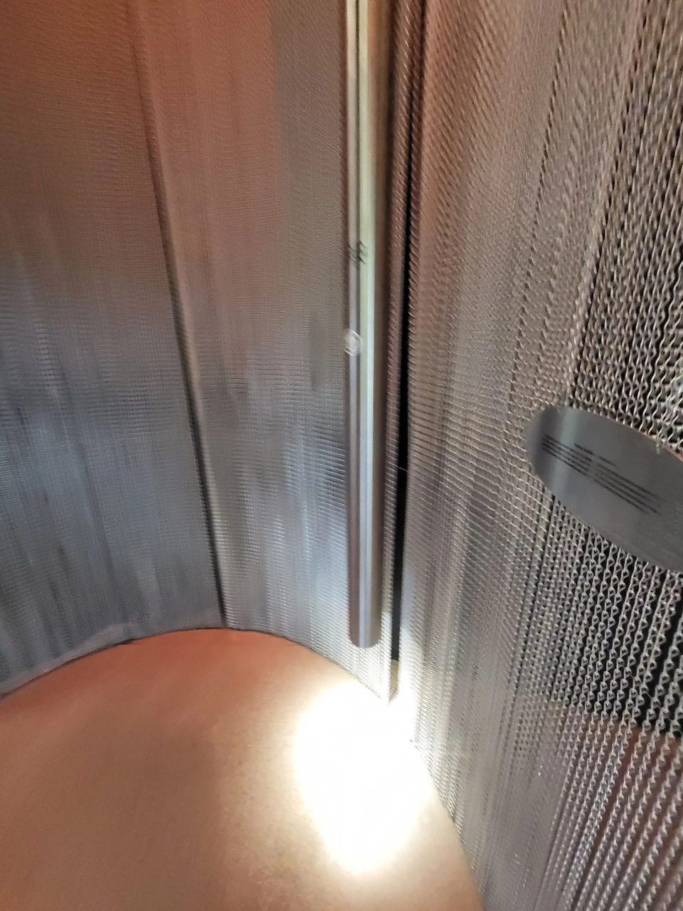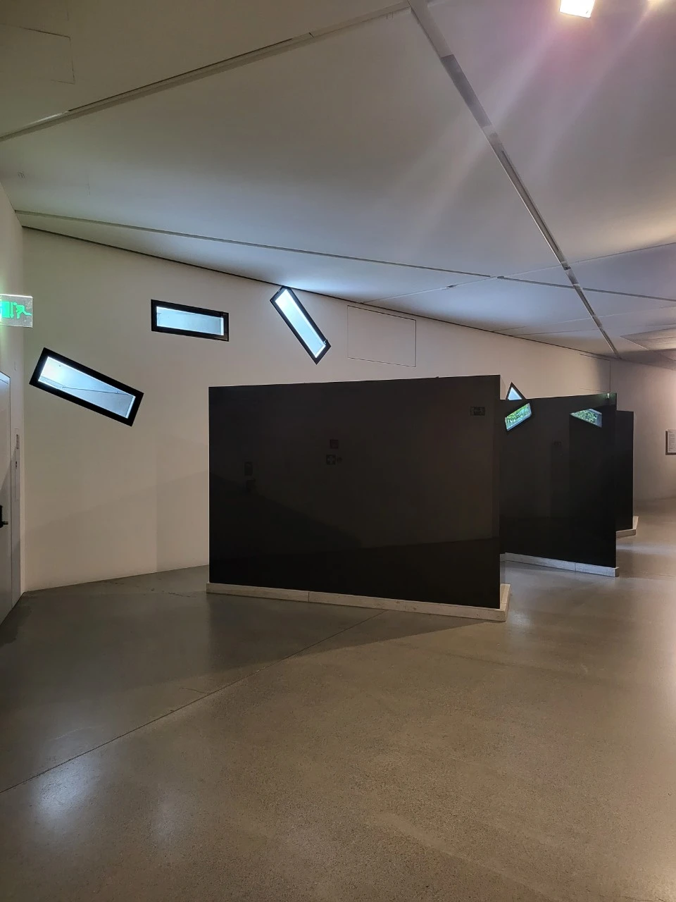 외관에 빗금처럼 줄이 간 건 내부에서 보면 창문이다. 매우 독특하며, 스테인리스 등 철제 구성이 많다.