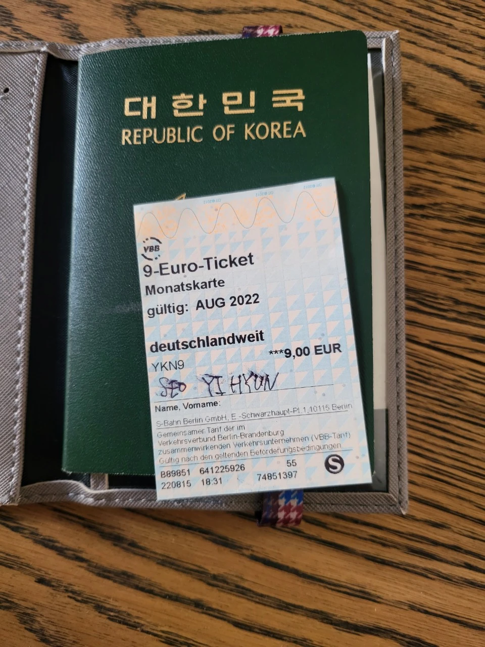 구글 경로 찾기 링크와 캡처한 이미지도 보냈다. 왼쪽 여권 앞에 있는 건 8월 내내 1만 원에 대중교통을 이용할 수 있는 티켓이다. 이거 하나면 비록 며칠이지만 베를린 여기저기 쏘다녀도 전혀 부담이 없다.