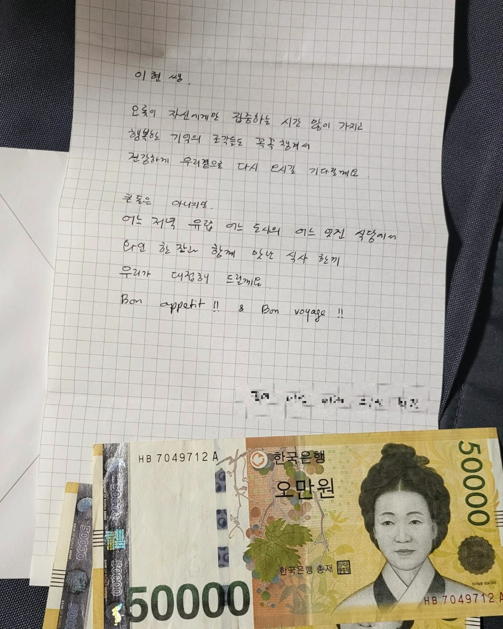 이건 회원님들이 손수 편지까지 써서 밥 사 먹으라고...
