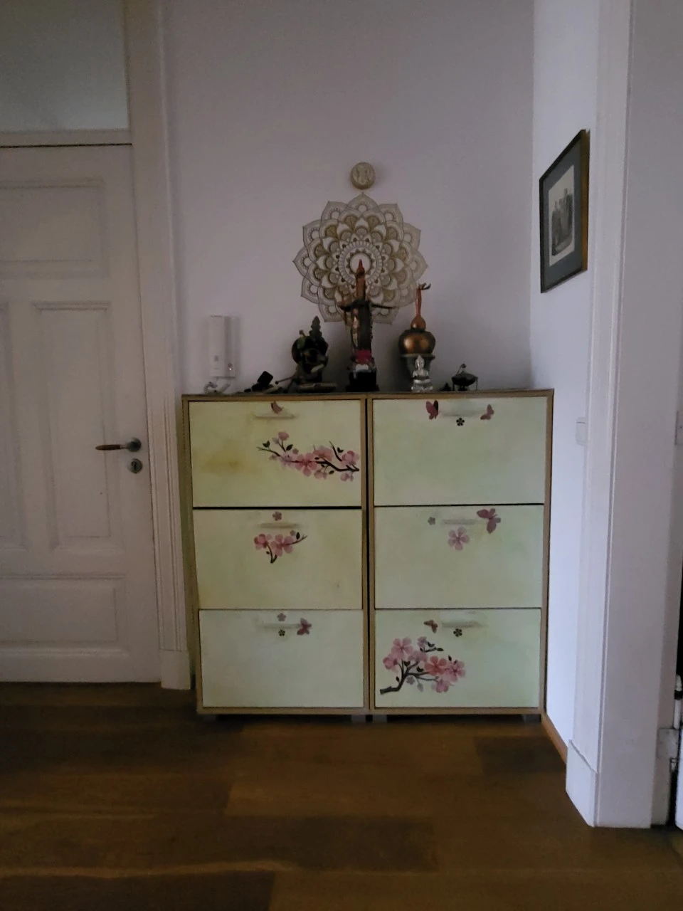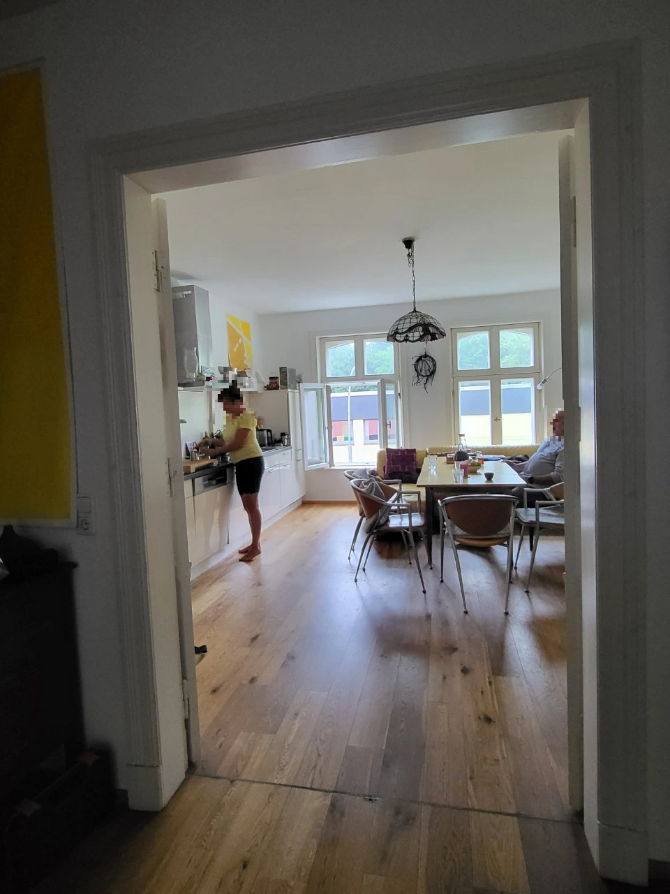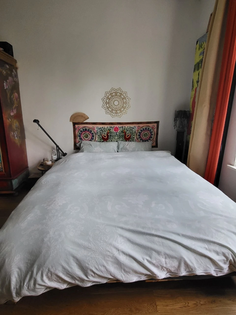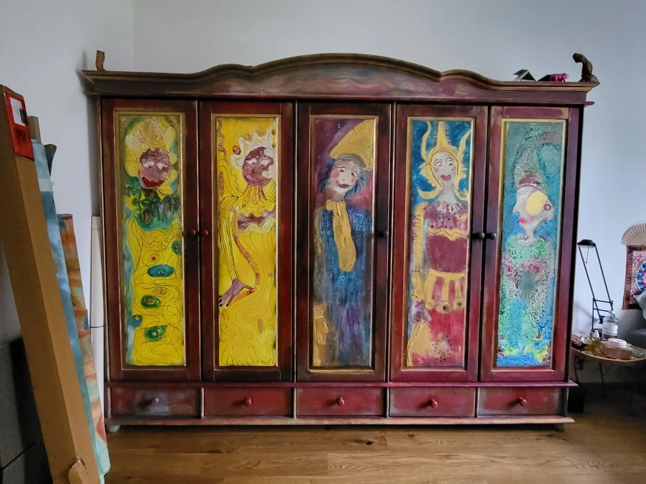 뤼붹에 머무는 동안 쓸 방이다. 엄청 큰 방이고 너무 예쁘다고 한다. 장롱은 오래된 물건인데 아티스트(예술가)인 테다가 직접 그린 거라고 한다. 테다는 남사친 닐스의 누나 이름이다. 우리도 외국 나가면 친구를 소개할 때 한국에서 OO분야에서 훼이머스 한 사람이라고 구라(이런 표현 쓰면 안 되나 ㅋㅋ)를 섞어 소개하곤 하는데, 테다의 경우 그런 거 안 섞어도 유명한 분이라고 한다. 테다는 화가라고 한다. 닐스의 집안 자체가 아티스트의 피가 흐르는 것 같다.