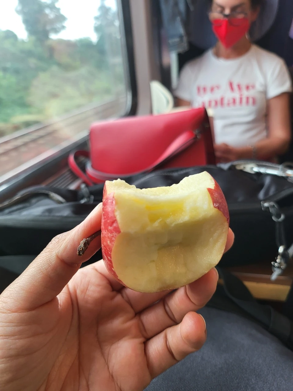집에서 나오는 길에 디애나가 가면서 먹으라며 사과 하나를 쥐어 주더란다.