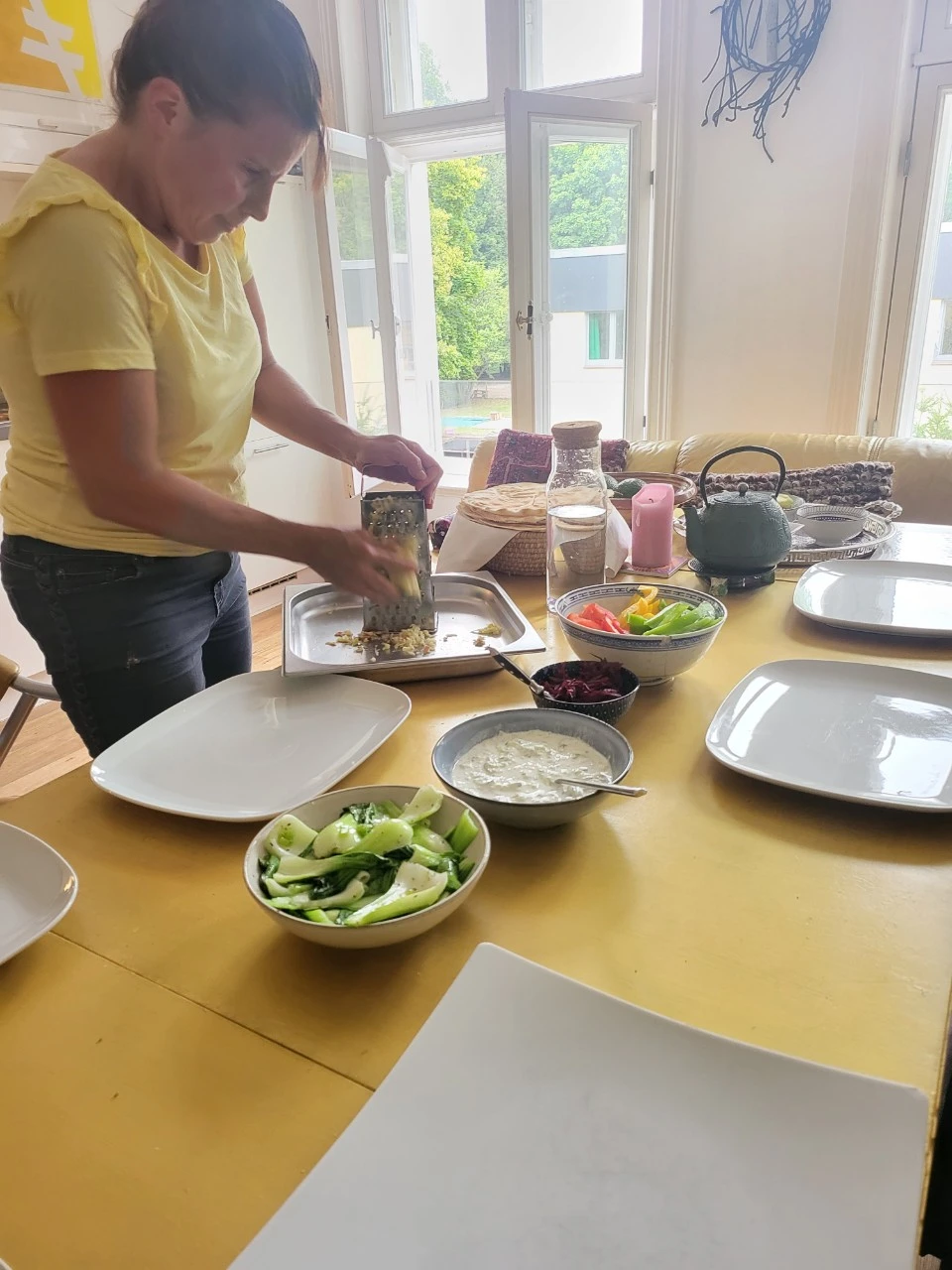 도착해서 바로 늦은 점심 식사다. 서프로를 기다려 준 독일 가정식인 거다. 테다는 딸이 셋인 나름의 대가족인 셈이다. 부부는 아이들을 제대로 먹여야 하기에 항상 요리를 해야 하는데 서프로가 그 덕을 톡톡히 보는 셈이다. 프레드릭&나딘 부부와, 알렉산더&디애나 부부는 서로들 바쁘고 아이가 없거나 어려서 가정식에 조금 소홀할 수 있겠지만 여긴 서프로의 호기심과 만족도가 높아질 수밖에 없었을 거다.