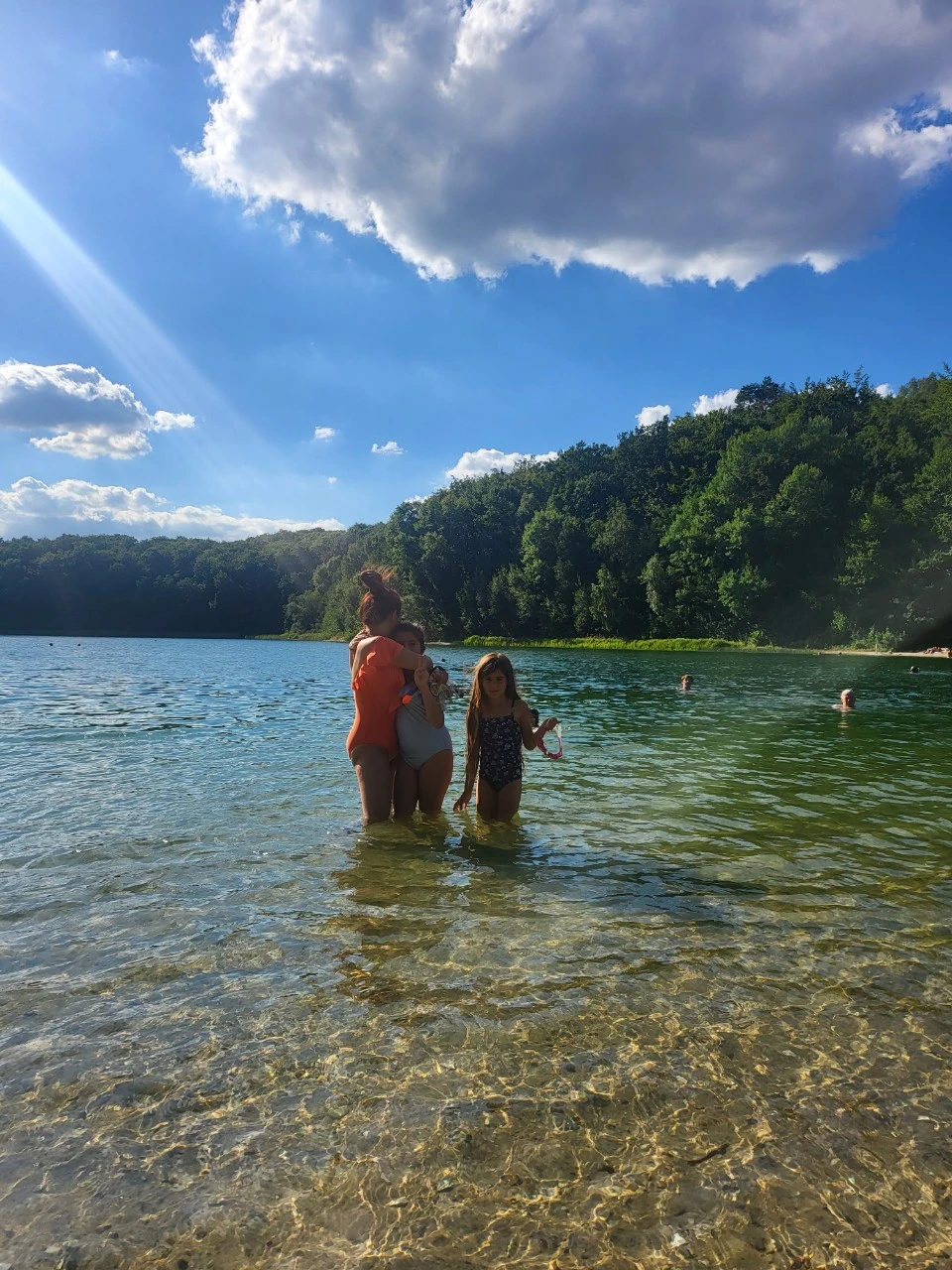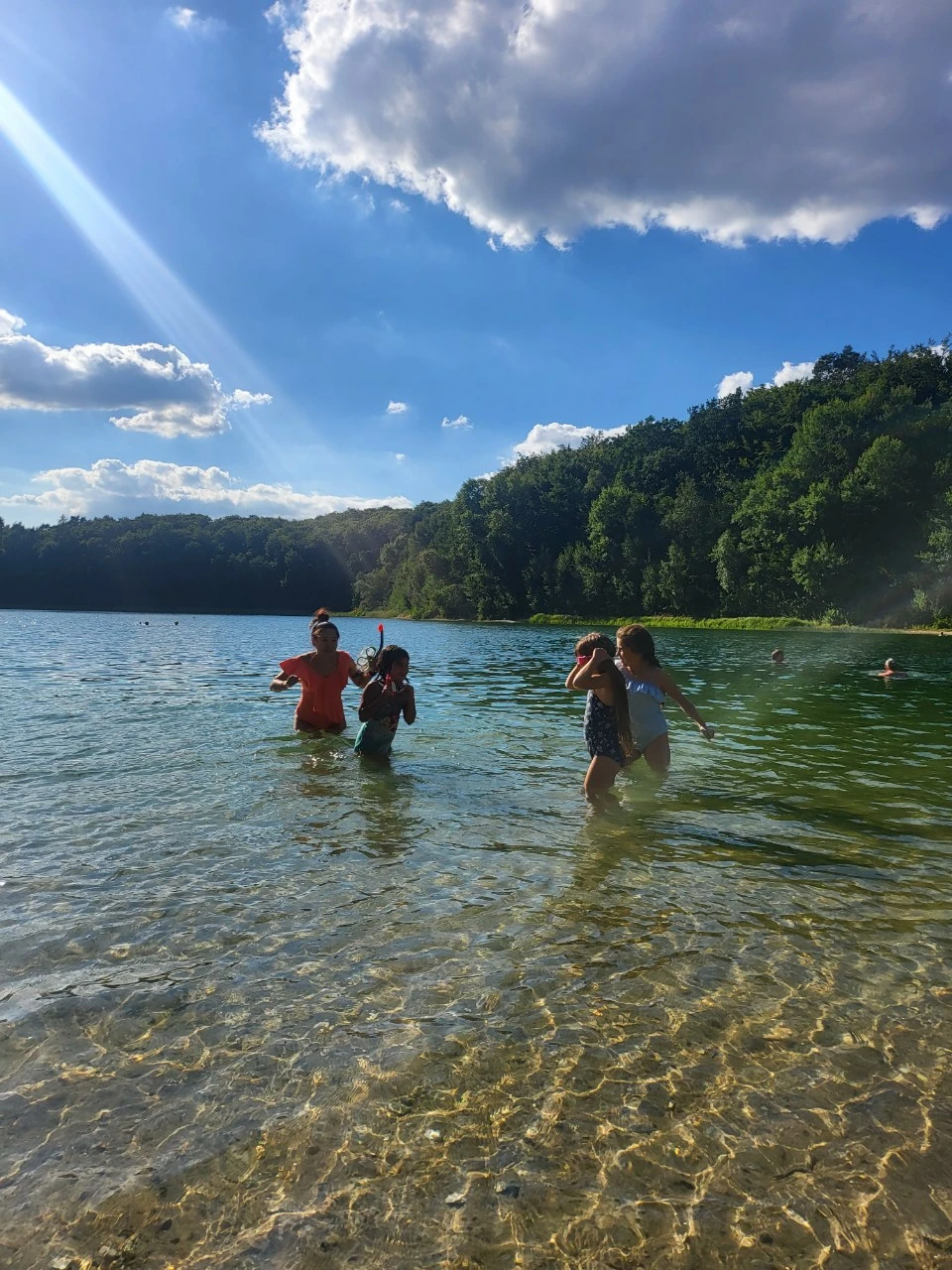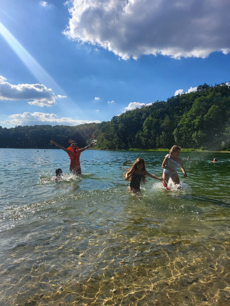 숲 속을 한참 걸어가야 나타나는 호수에서 본격적인 물놀이