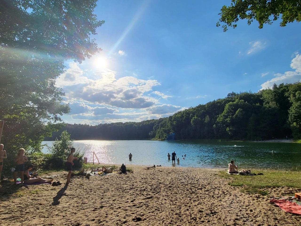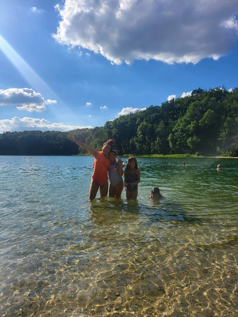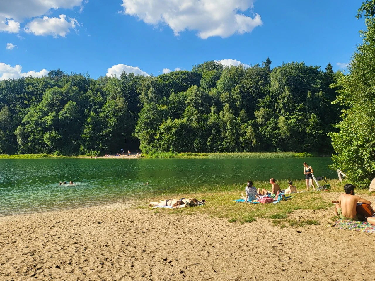 숲 속을 한참 걸어가야 나타나는 호수에서 본격적인 물놀이