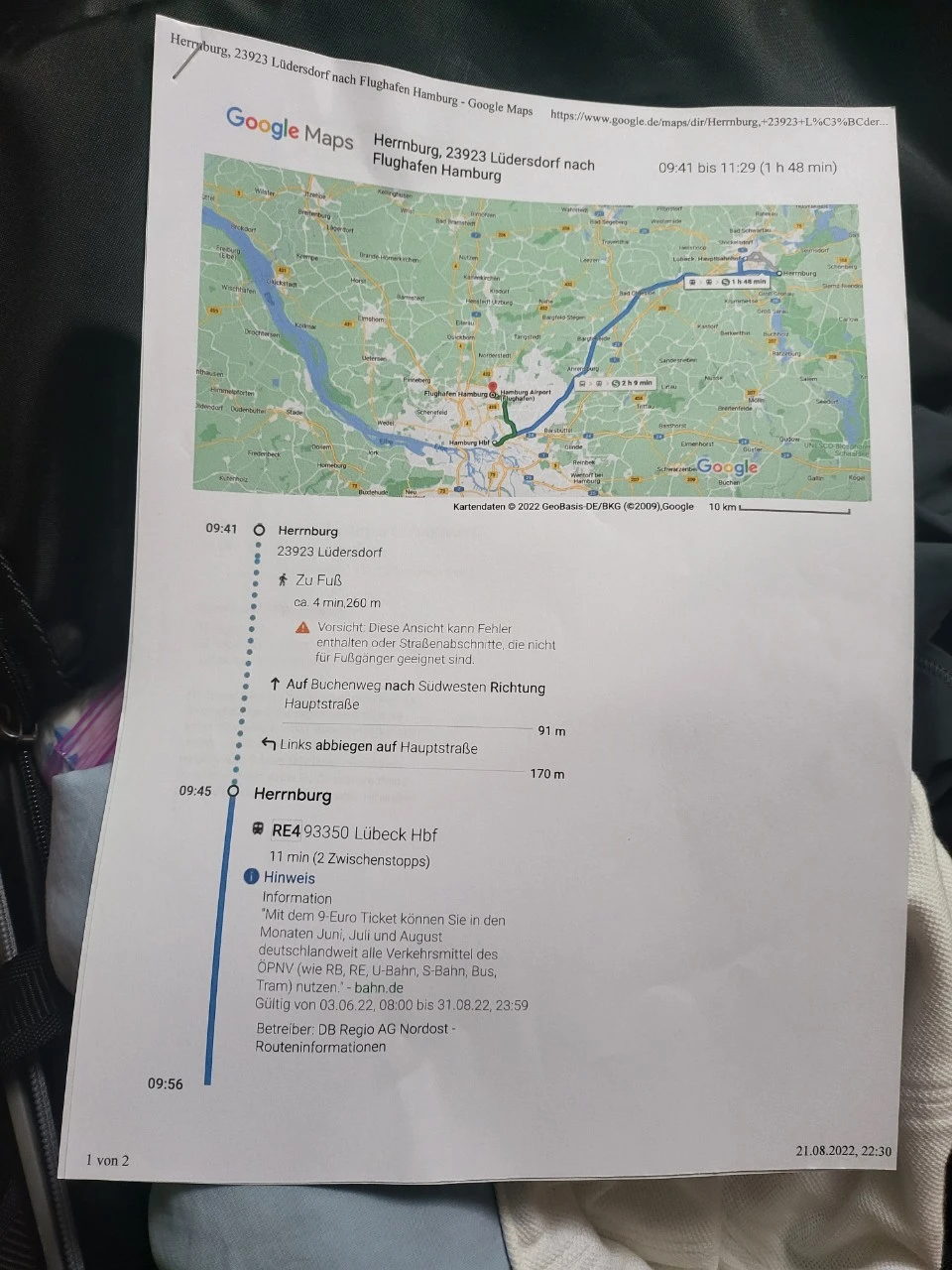 친절한 막스가 함부르크 공항까지 무사히 갈 수 있도록 교통편까지 정리해서 출력해 주었고...