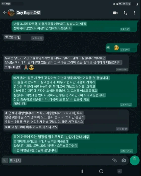 새벽 3시 50분에 일어나 서프로 상황을 확인했다. 역시 카톡이다. 베를린은 이제 8시 50분이다.
