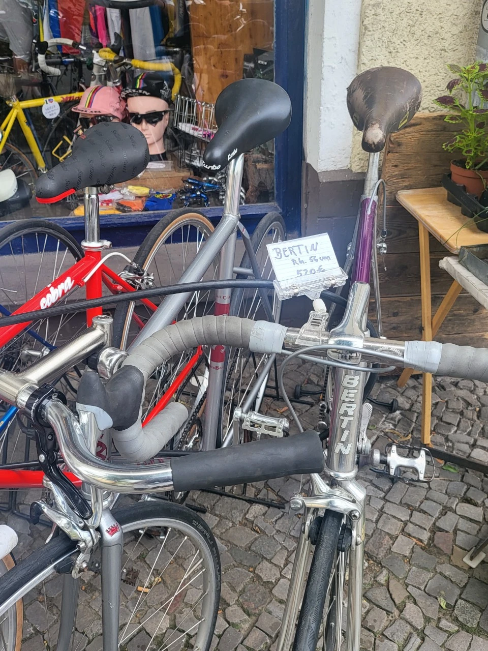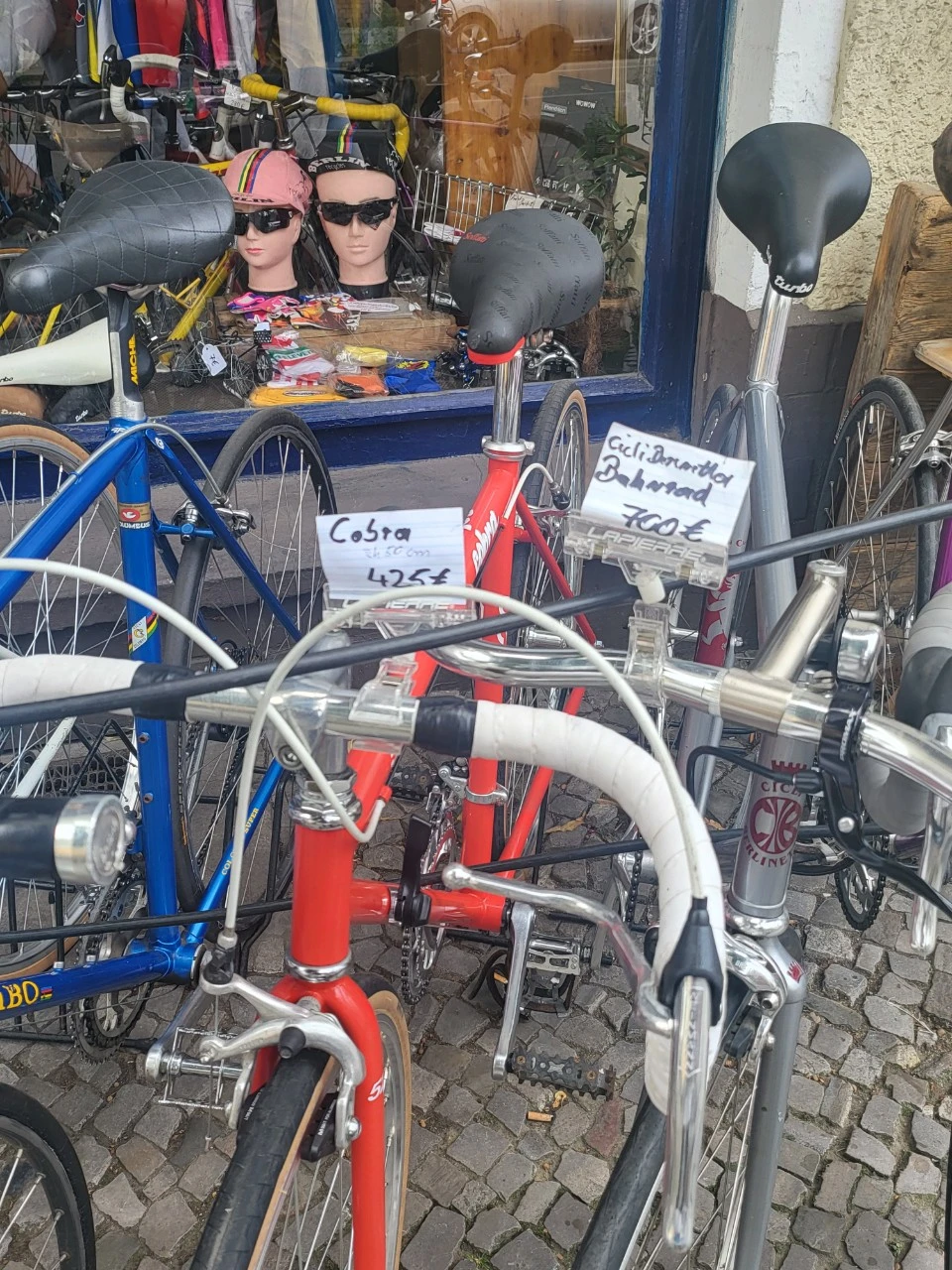 자덕이라면 이런 사진 하나만 봐도 견적이 바로바로 나올 거다. 고급 자전거는 아니지만 자전거를 많이 타는 유럽 사람들의 생활 자전거들인 거다. 중고 자전거를 이렇게 전시판매 한다. 독일에도 당근마켓 같은 앱이 있긴 할 텐데... 아무튼 그런 P2P 상거래는 우리나라가 한참 앞서 있을 것 같긴 하다.