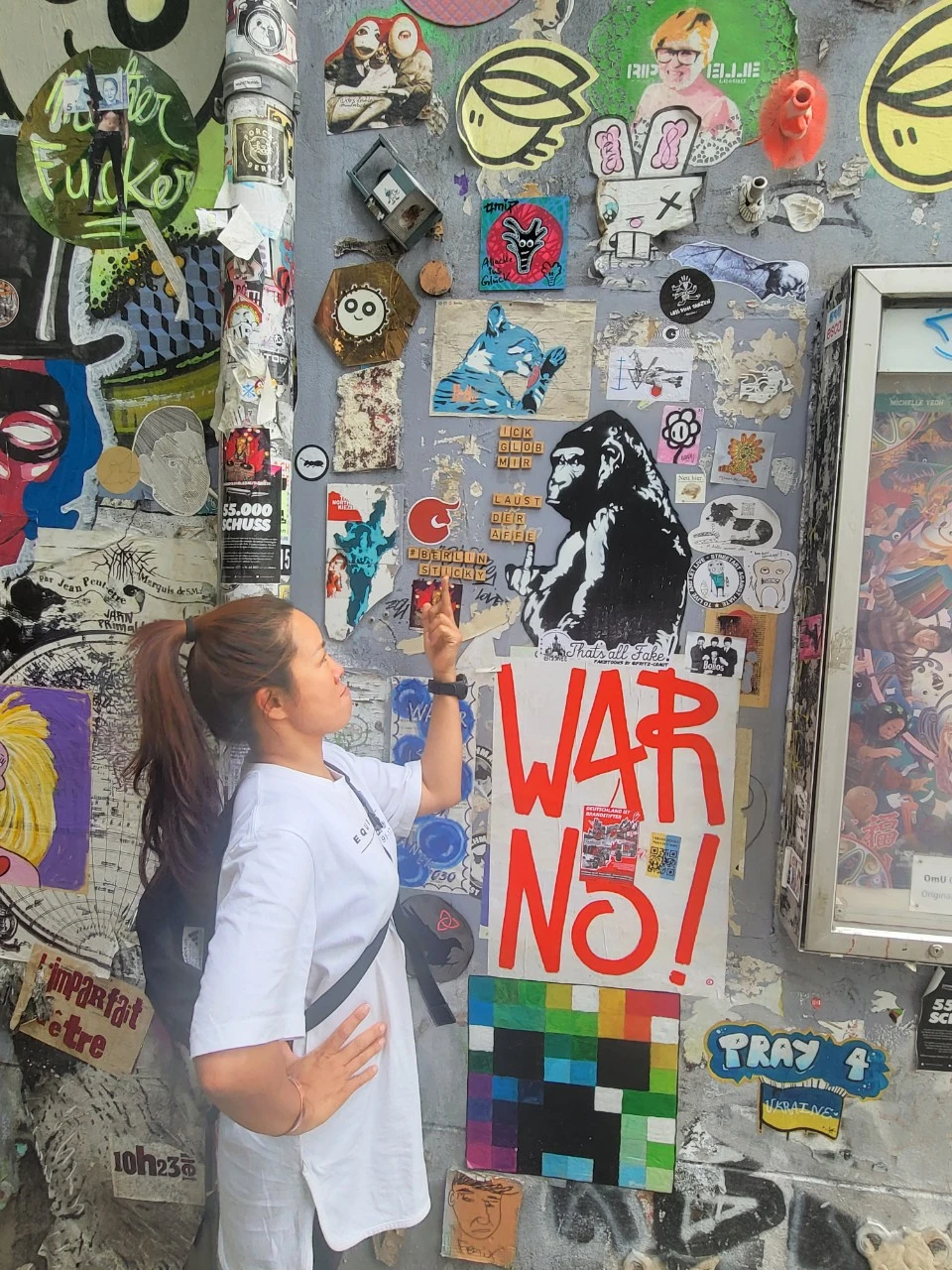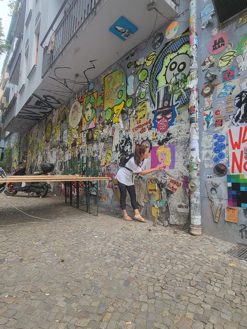 벽화와 스티커가 겹겹이다. 무분별한 것 같긴 하지만 그 안에도 나름의 재미있는 요소들이 많은 모양이다.