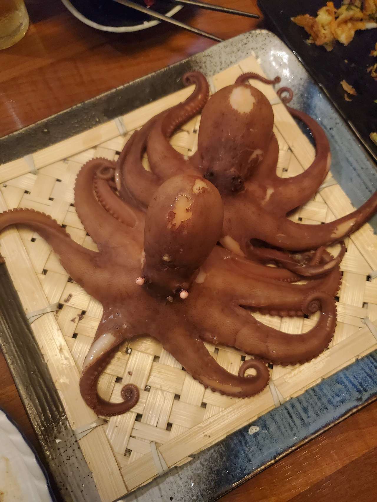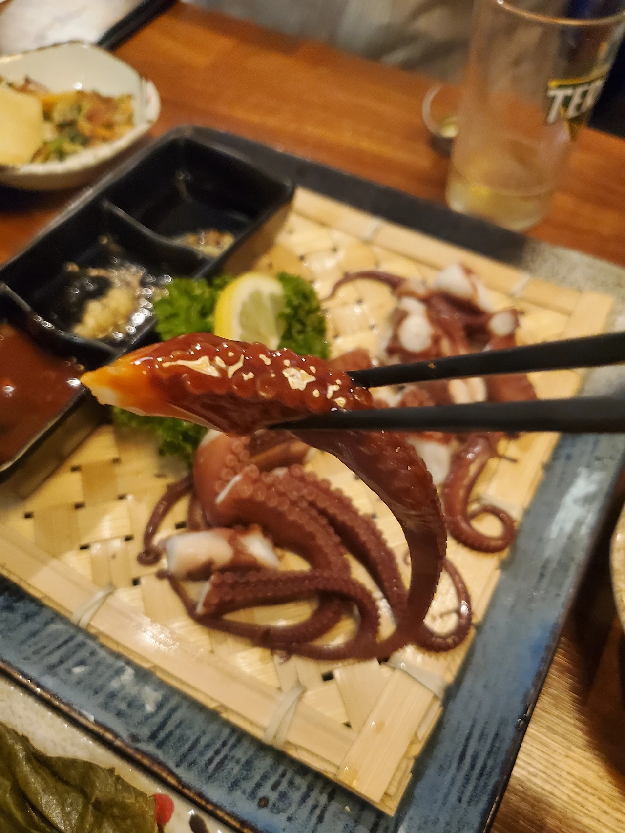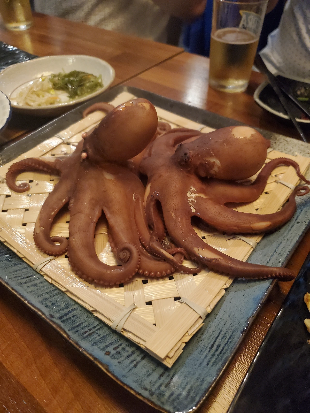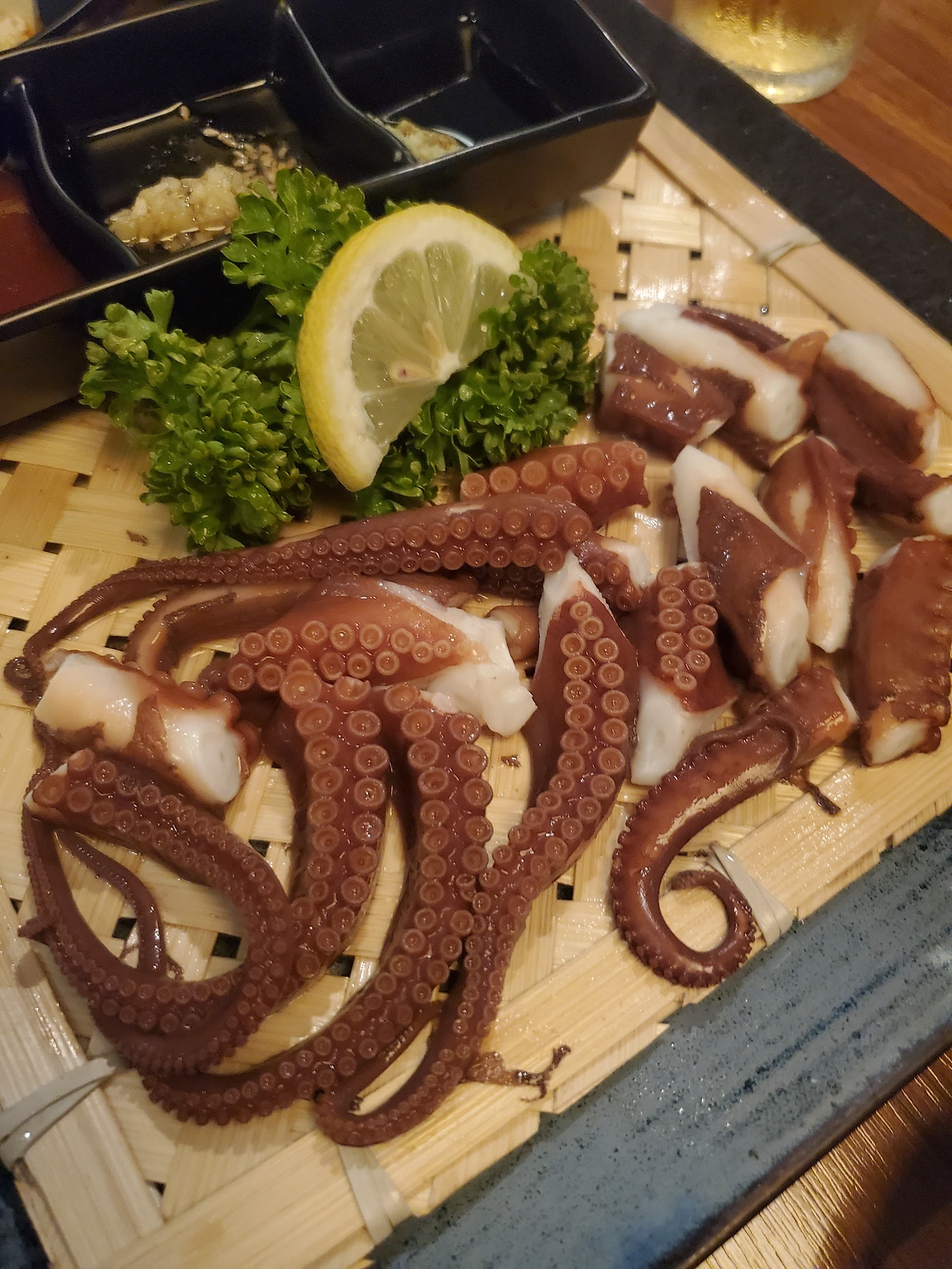 난 마침 해운대에서 미팅이 있어 해운대 주민이 소개한 그들만의 맛집에서 통문어와 오징어찜 등을 먹고 있었다. 염장성 사진을 보내 주었는데 알렉산더는 이게 뭐냐며... 먹는 거냐며... ㅋㅋ 문어라는 건 알고 있었겠지만 대체 저렇게 해서 뭘 어떻게 먹겠다는 건지 궁금했던 모양이다. 그래서 해체된 후 초고추장에 찍어서 먹는 걸 보내줬다.