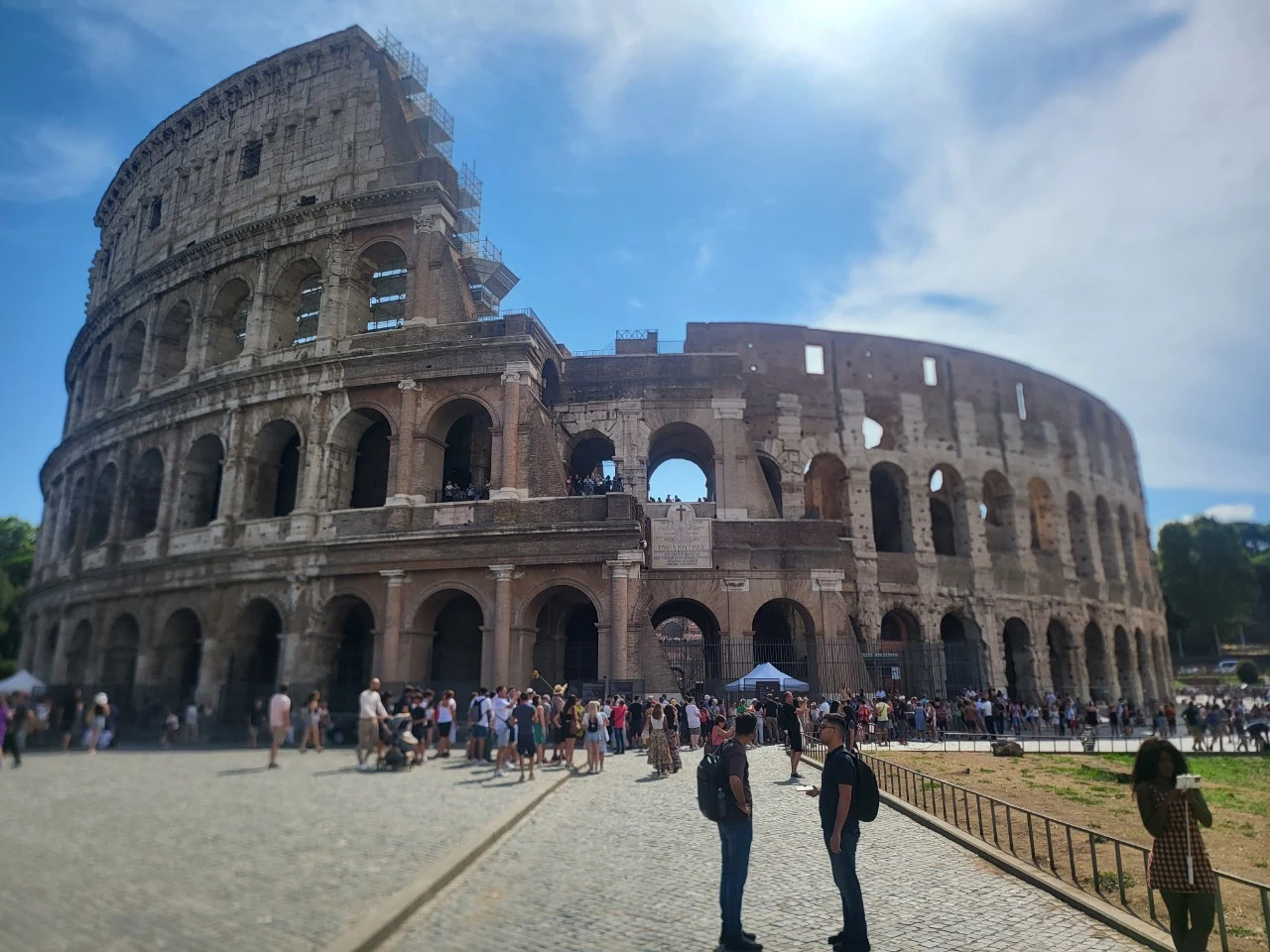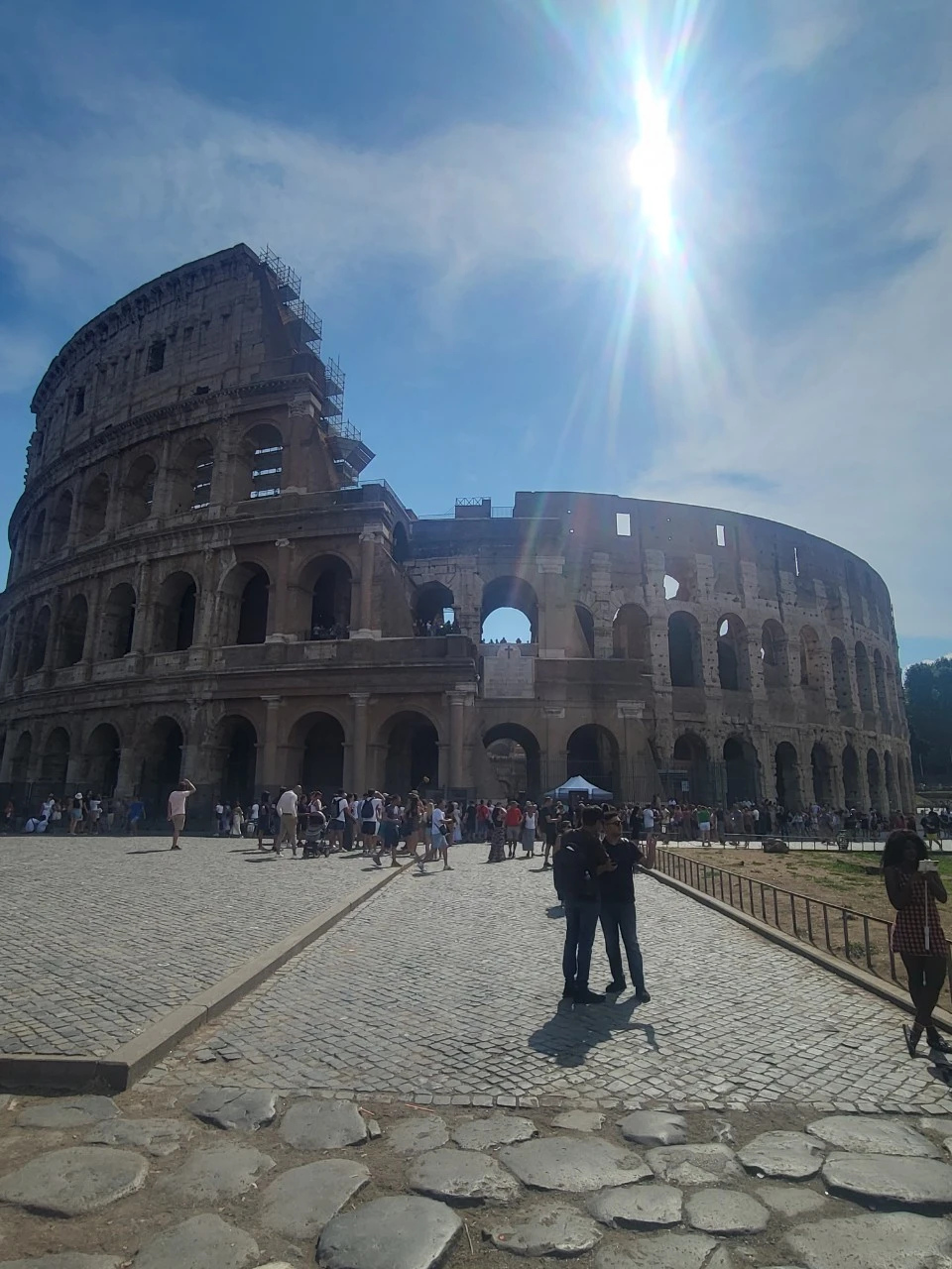 콜로세움 옆에 땡볕에 앉아서 먹고 있어ㅋ