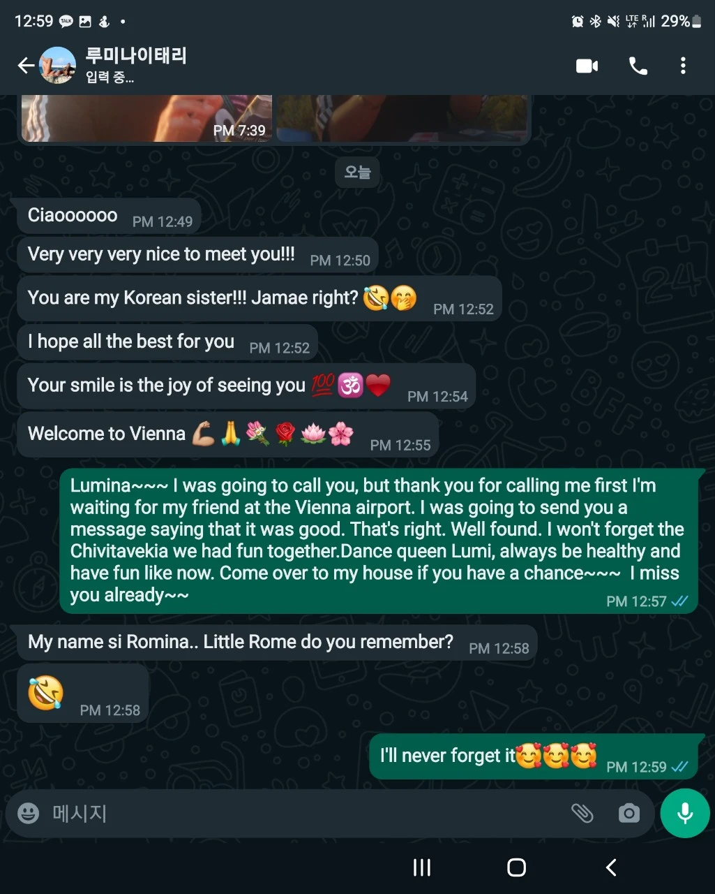 공항 가서 체크인하고 다시 할게요