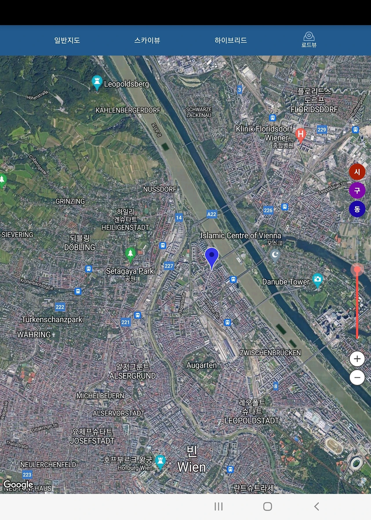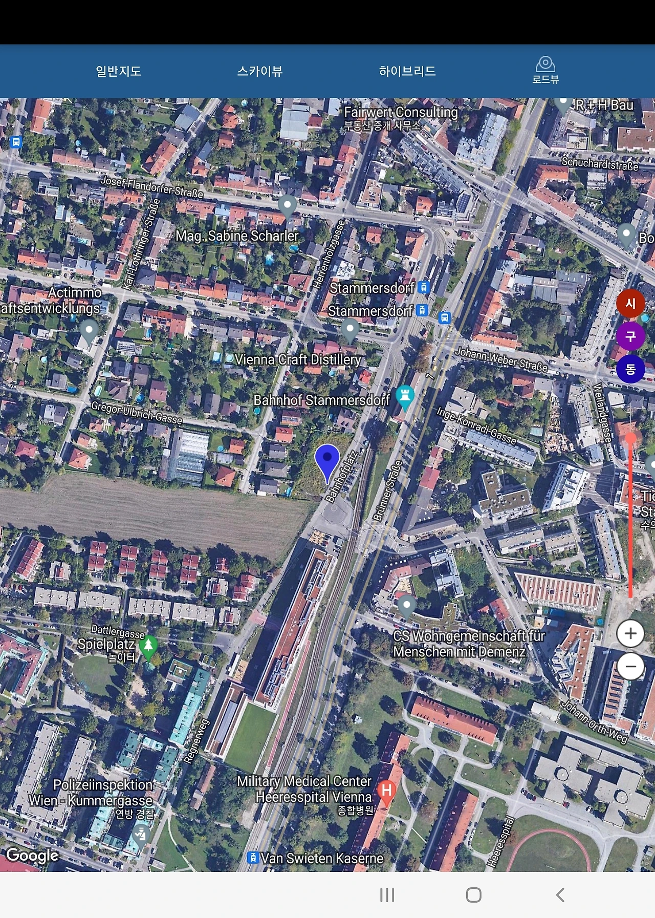난 서프로 위치를 보고 구글 맵에서 로드뷰를 캡처해 보냈더니 우측 사진을 보냈다. 거기 앞에 버스가 서더라며 가까운 슈테판 성당으로 갈까 생각 중이란다. 날씨가 어째 비가 올 것 같다더니 실제로 비가 와서 조금 맞고 다녔다고.