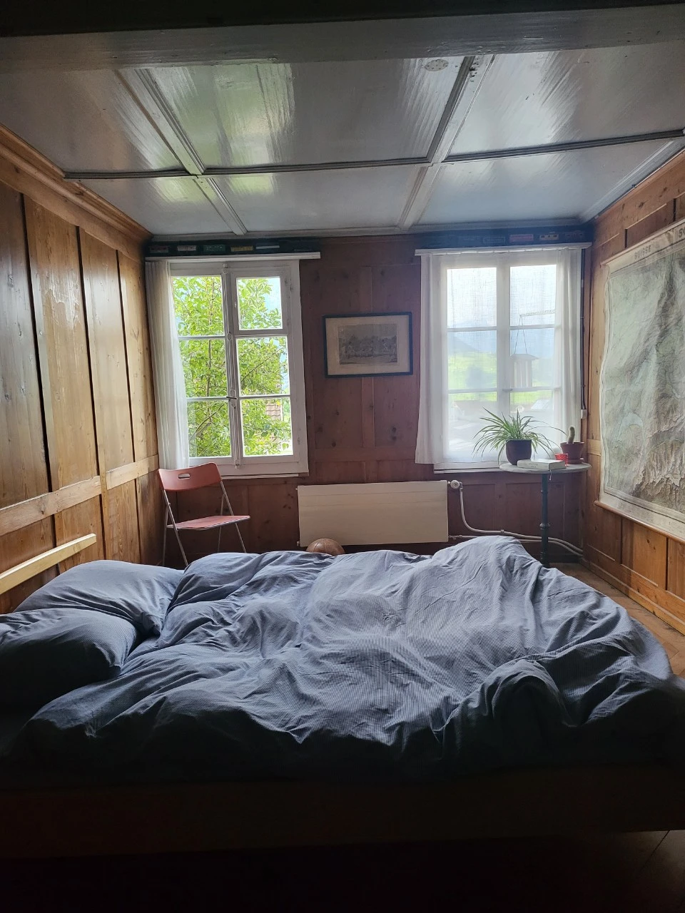 여긴 서프로가 묵을 방이다. 이 집은 무려 300년이 넘었다고 한다. 우리나라엔 300년 넘은 집이라고 해봐야 궁궐 같은 것들 뿐일 텐데... 문화적 깊이의 차이를 느끼게 한다. 아무리 전쟁을 겪었다고 하지만 체구도 커지고 식사문화 등 생활습관도 달라진 요즘 예전 구옥에서 지금처럼 편안한 삶을 살 수는 없을 것 같다. 물론 스위스 역시 300년 된 집이 최신 트렌드로 설계하고 최신 공법으로 지은 집처럼 편할 수는 없겠지만 말이다. 서프로가 지금껏 거쳐온 덴마크 코펜하겐, 독일 뮌헨, 독일 뤼베크, 이탈리아 치비타베키아, 오스트리아 빈에서도 그랬고 지금 묵고 있는 스위스 추쿠 역시 오래된 집들인데 그들은 전혀 불편하게 생각하지 않는다. 최근 영국에서는 하자가 많고 열효율이 떨어지는 고주택과 효율 좋은 신주택을 두고 저울질하는 추세라고 한다. 러시아-우크라이나 전쟁 후 가스 공급 등의 이슈 때문이기도 하고 영국 정부에서 임대차 관련 세제 개편 문제가 있다고 한다. 어쨌거나 스위스 취리히 남쪽의 소도시인 추쿠의 300년 넘은 토마스의 집은 그저 정겹다. 서프로의 눈엔 모든 게 신기하고 신기하다.