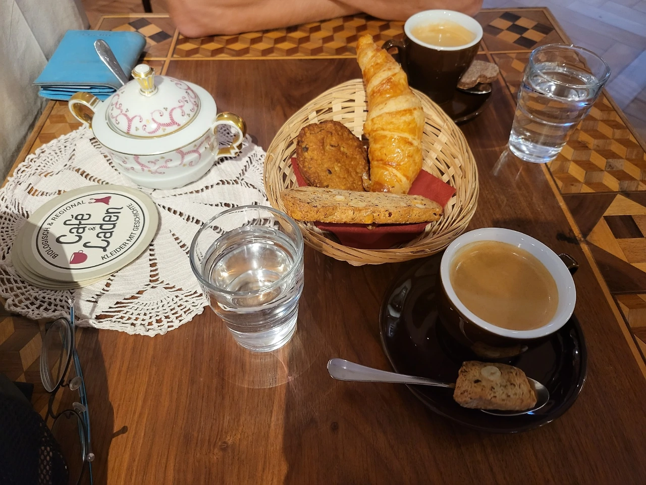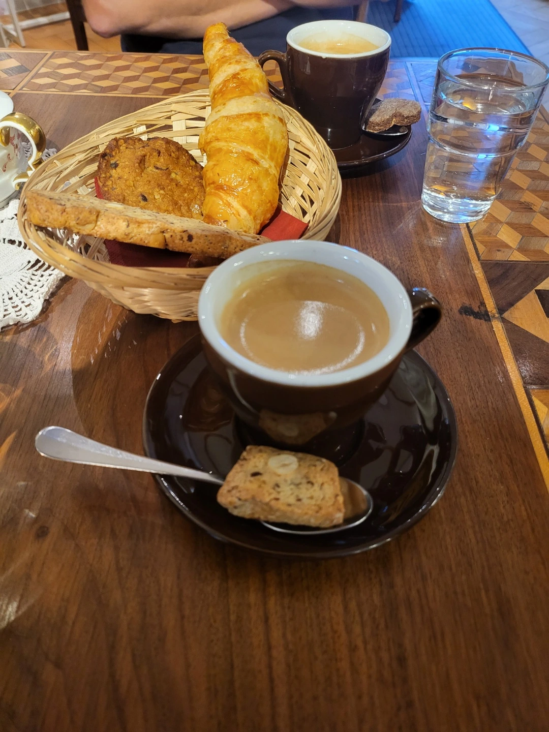 아침으로 커피에 크루아상을 먹고 이동했어.