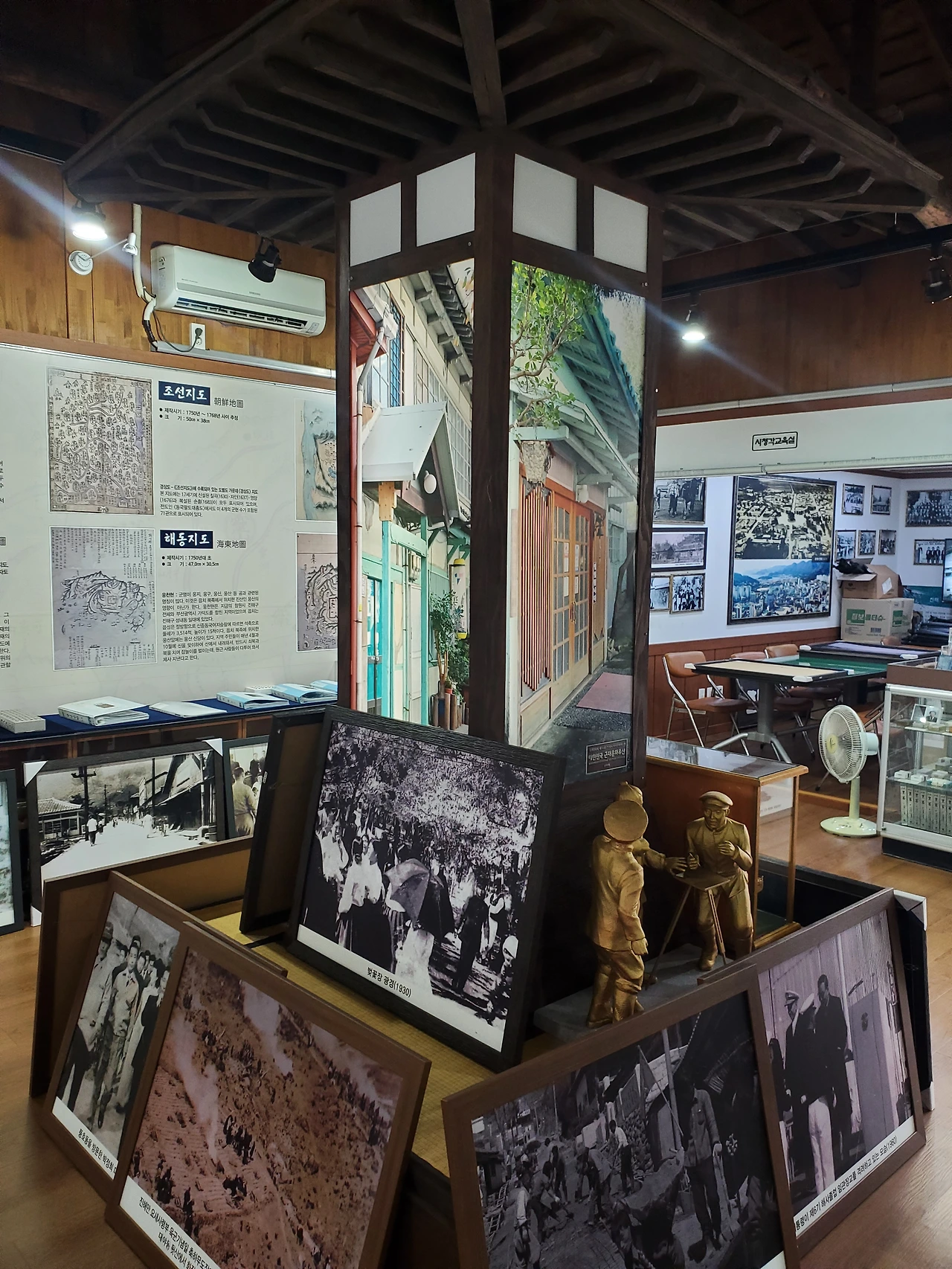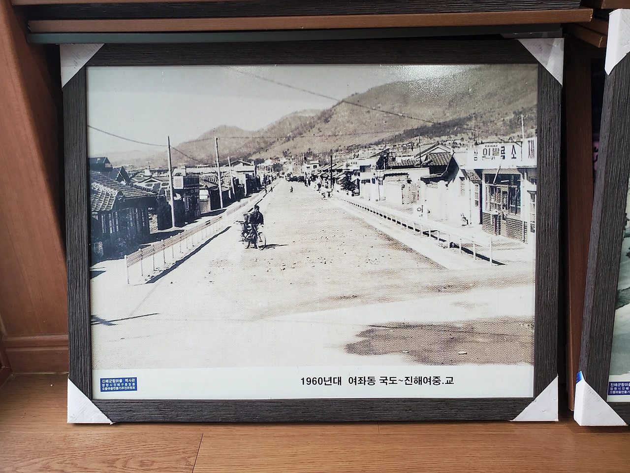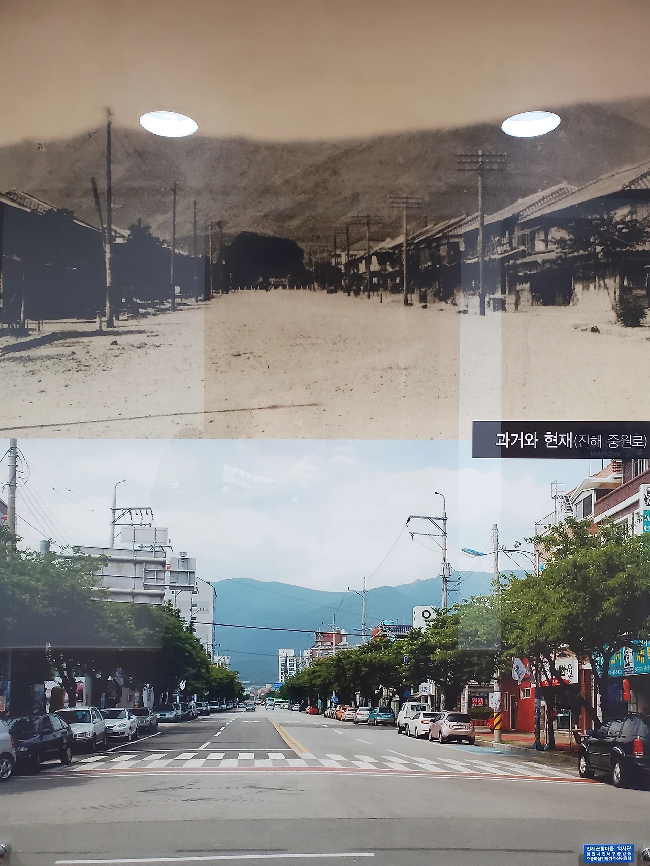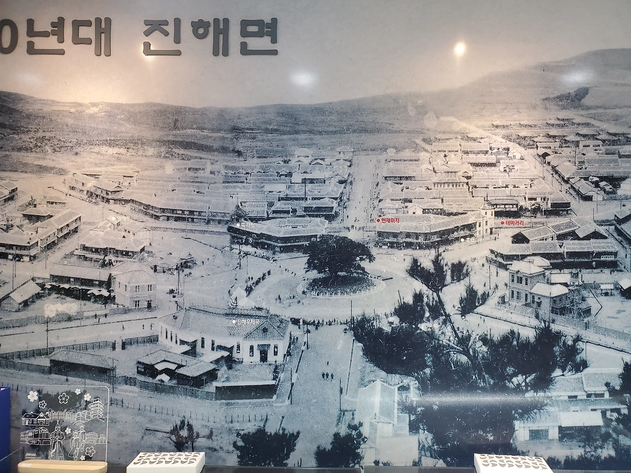 전시관 1층 사진들이다. 난 우선 한 바퀴 돌며 사진을 남긴 후 시니어 할아버지 한 분의 설명을 들었다. 난 어릴 적 잠깐 살았던 진해의 깊은 추억을 머릿속에서 짜냈다. 이미 지난번 자전거로 진해에 왔을 때 대충 지리를 기억해 냈고, 그 어린 시절의 길을 기억하고 있는 나 자신에게 놀라기도 했는데 이렇게 오래된 진해의 모습을 보니 감회가 더욱 새로웠다.