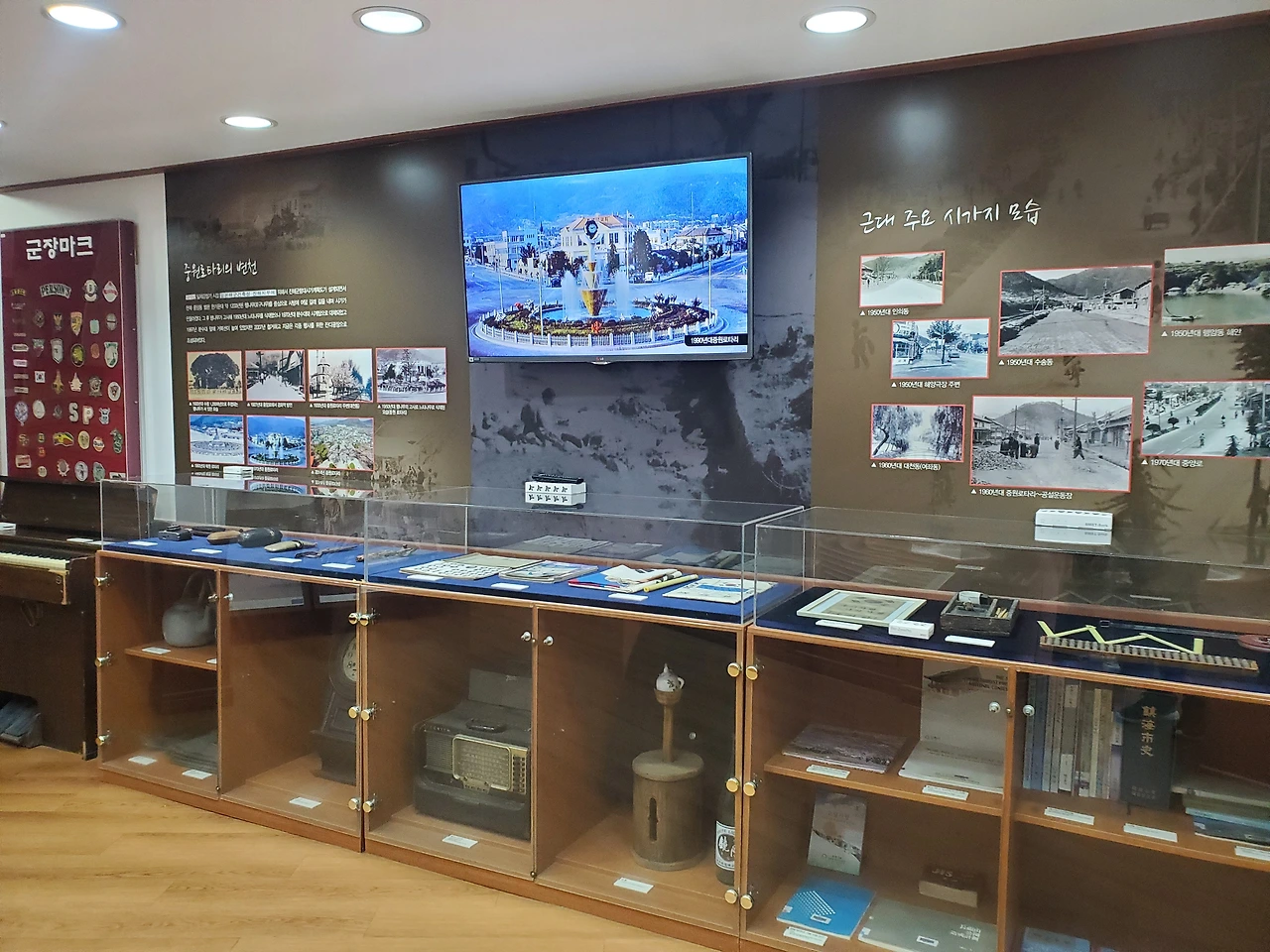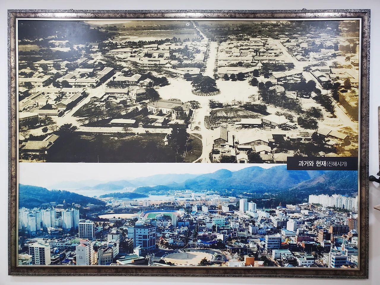 시청각실 안에 진해시가 옛 모습과 최근 모습이 담긴 사진이 있다.